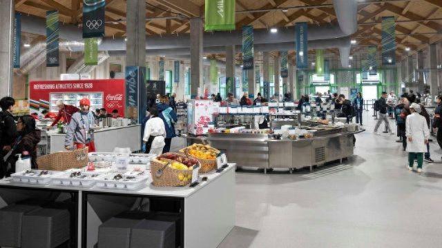 冬奥会期间,每个奥运村配备了6名厨师,24小时开放餐厅。每天,餐厅会消耗掉1万个鸡蛋、60公斤格拉纳帕达诺奶酪、供应8000杯咖啡、365公斤意面和1.2万块披萨。整个冬奥会期间,奥运村的餐厅一共供应了16.4万份餐食。