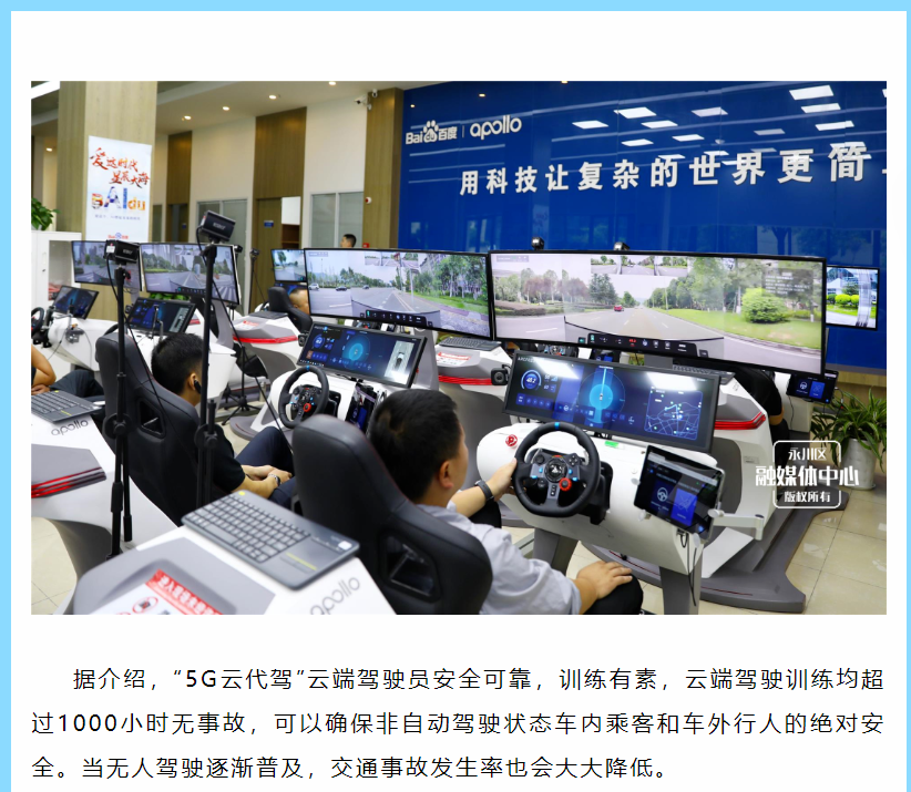 事实上,早在2024年的时候,就有媒体报道,百度旗下无人驾驶出租车萝卜快跑其实有驾驶员人为干预。对此,萝卜快跑官方客服回应称,萝卜快跑目前是自动驾驶,是没有人操控的,但为了保证乘客安全,有的车辆配有安全员。此外据网信永川公众号2023年7月发布的内容,位于永川区大数据产业园的百度无人驾驶实验基地内,有云代驾安全员在5G云代驾舱进行远程实时控制,通过高带宽、低时延的5G网络,从屏幕组上观察汽车周围360°状况,并利用方向盘、档把、脚踏板等控制器驾驶无人车辆。5G云代驾的意义在于,在无人车没有安全员的情况下,当无人车出现解决不了的问题时,云端安全员可以帮助其远程脱困。