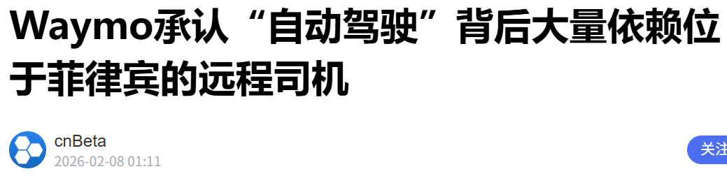 值得一提的是,今年2月初,据媒体报道,在美国参议院近期的一场听证会上,自动驾驶领军企业Waymo再次戳破了“完全自动化”的神话:当其无人出租车在路面上遇到不寻常情况时,车辆会切换由远程人工接管,而这些司机除了在美国本土外,相当一部分来自菲律宾等海外地区。
