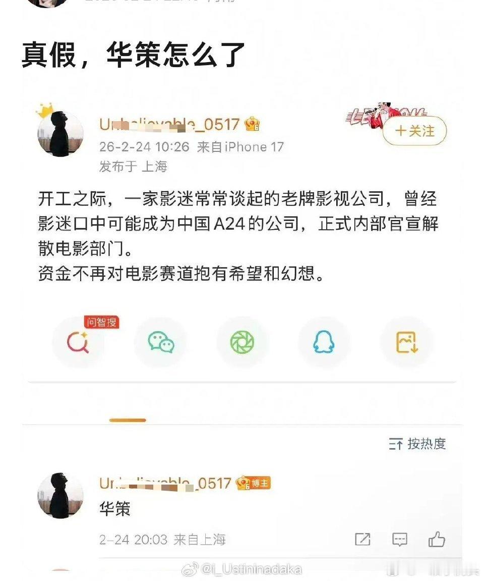 华策狂野时代华策回应了,公司组织层面上仍有电影部,只是近期没有影片上映,未来也