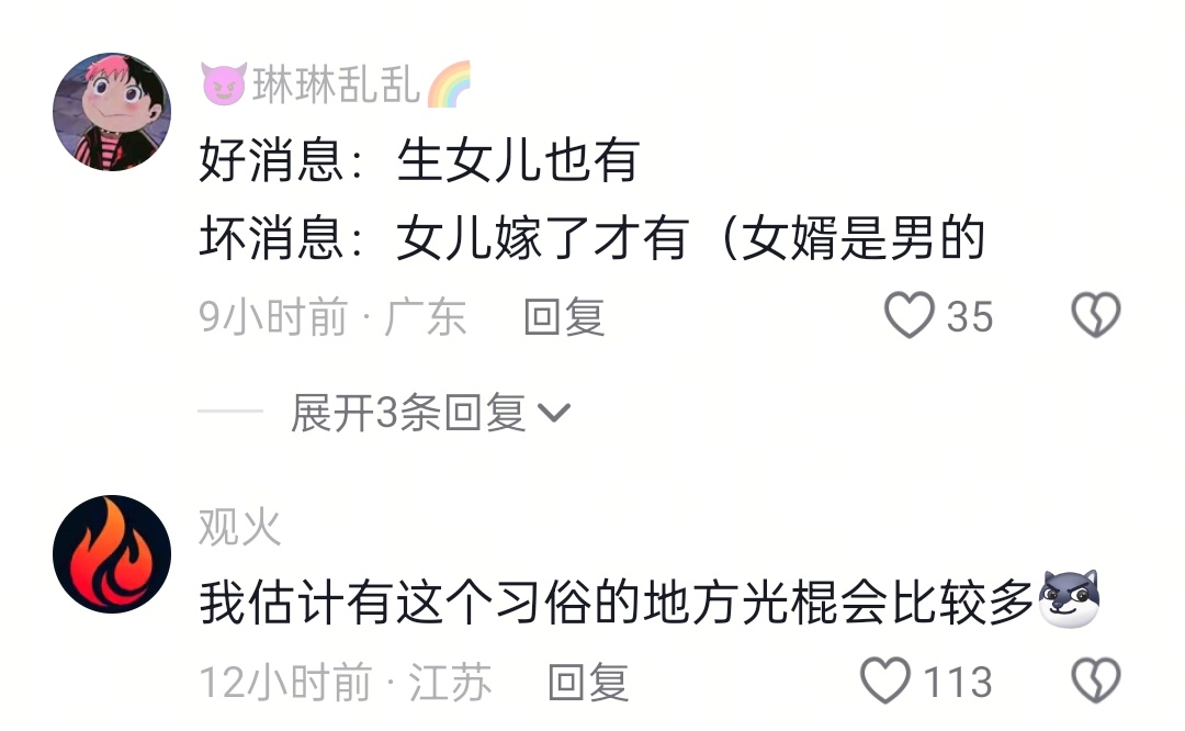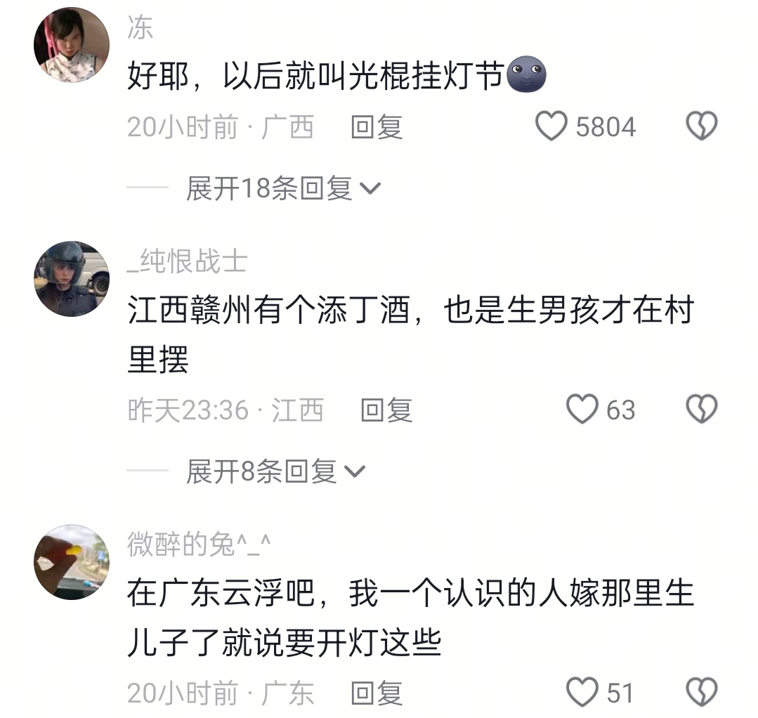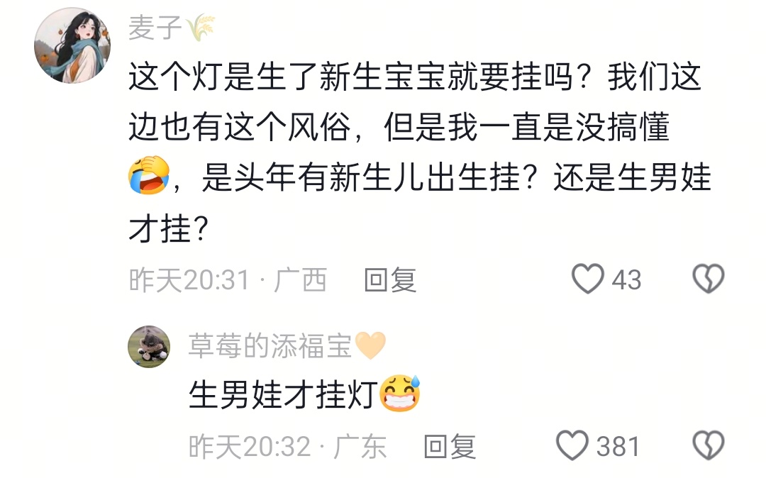 生男的就挂灯,生女的就不挂。挂个灯能咋滴,灯能生💰吗