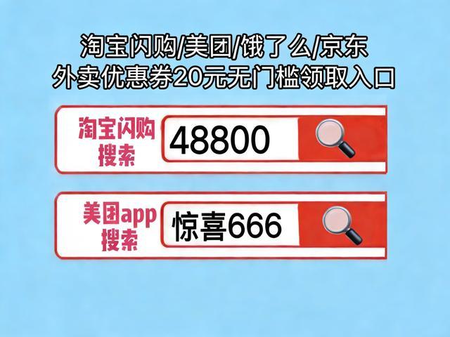 日常省钱必看:淘宝闪购想要大额优惠券,直接在淘宝闪购搜[48800][48900],每天10点、14点、20点准时开抢,额度更高更划算;美团外卖想省更多,就在美团app搜[惊喜666][惊喜333]领取大额神券,再搭配会员红包叠加使用,每一笔订单都能省上加省。