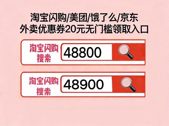 淘宝闪购外卖叠加券是淘宝闪购搜[48800]淘宝闪购外卖优惠券口令免费领取淘宝搜[48900],美团外卖优惠券领取口令是美团搜[惊喜666]美团神券最新口令