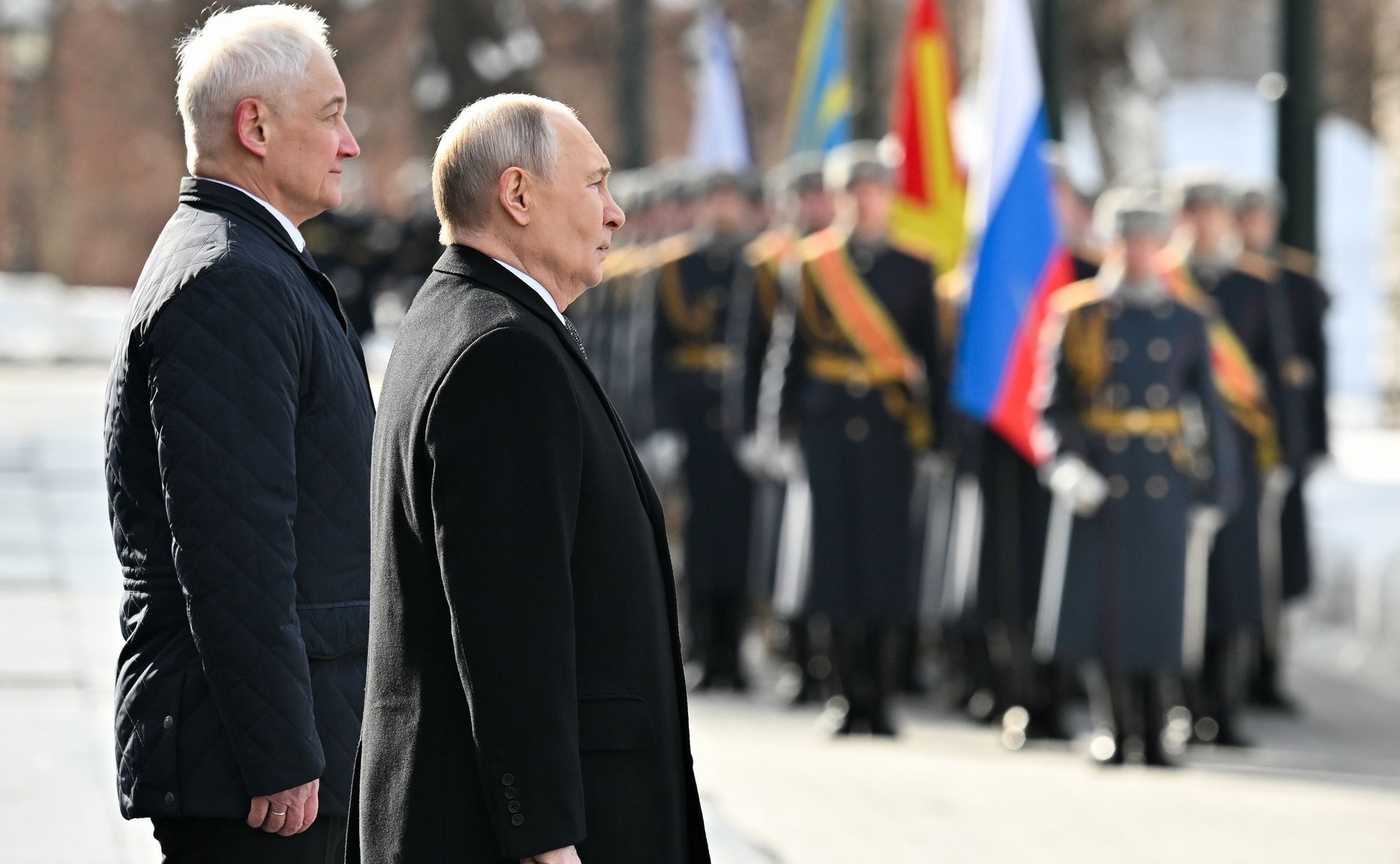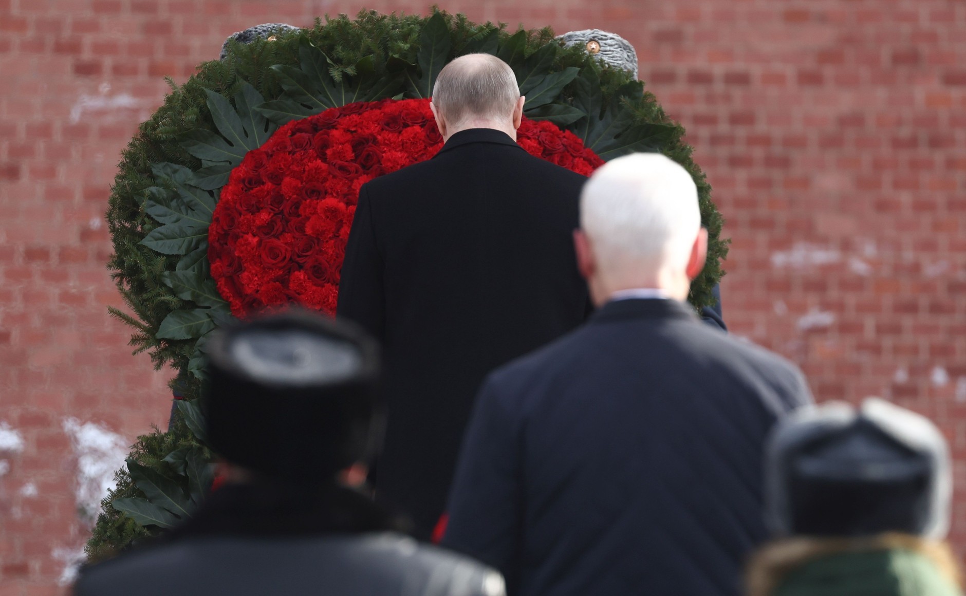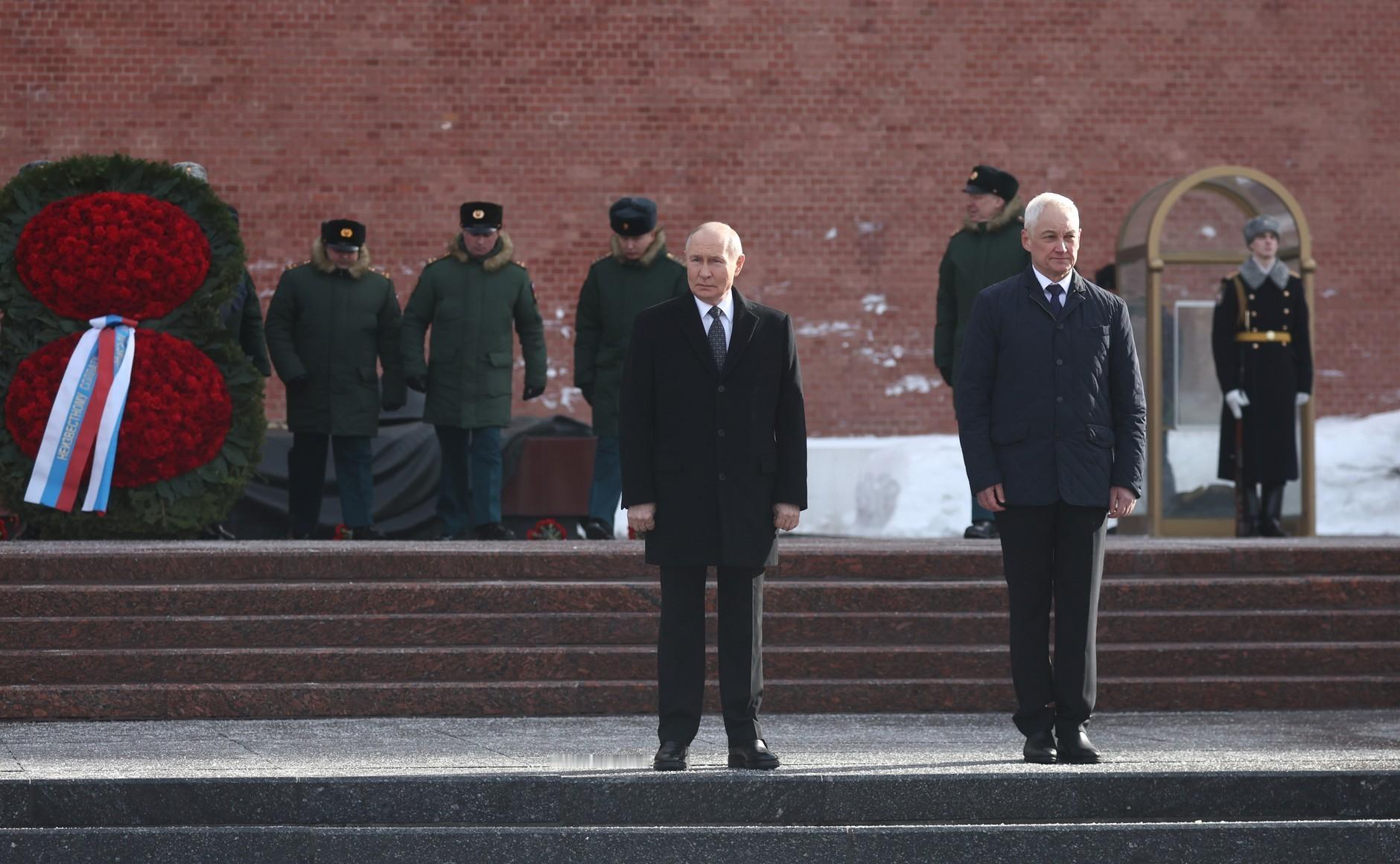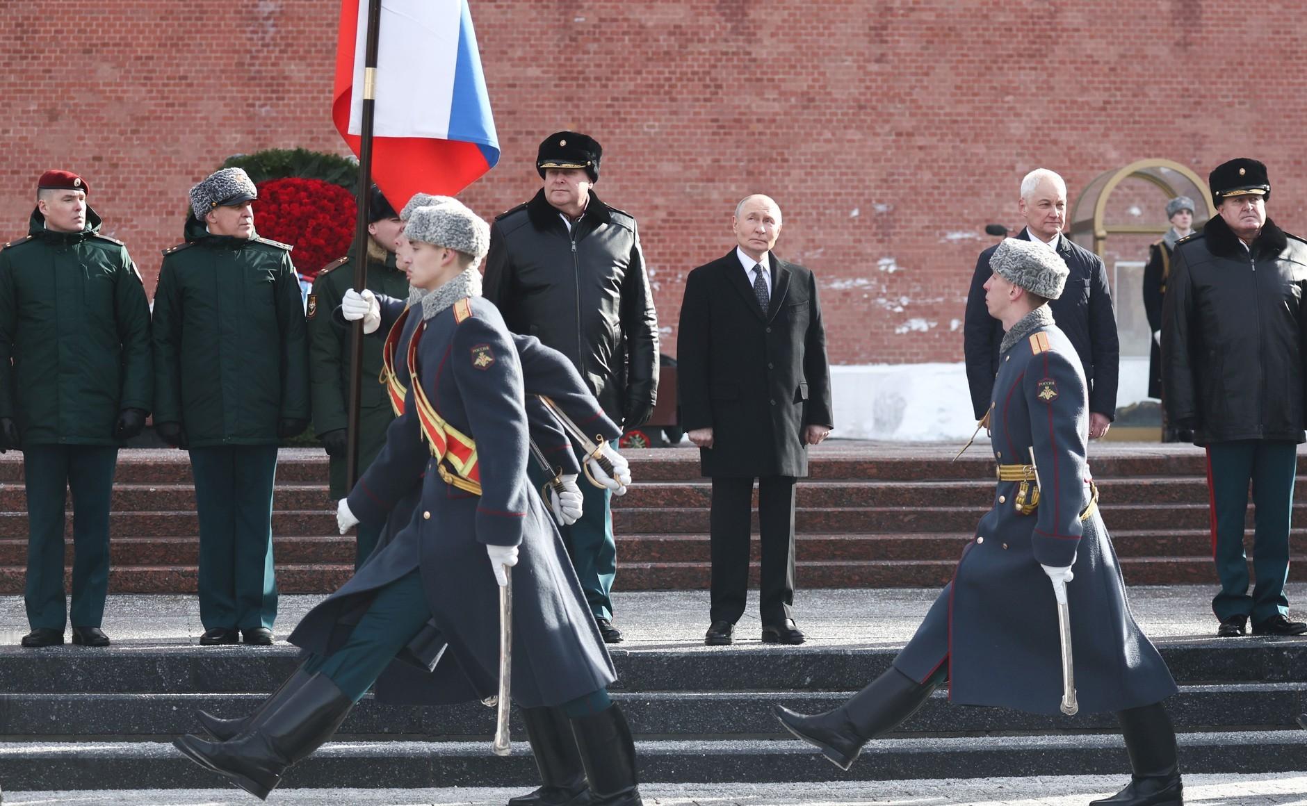 祖国保卫者日之际,弗拉基米尔·普京在亚历山大花园向无名烈士墓敬献花圈。