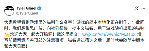 【就决定是你了哈基米】《喵喵的结合》官方中文本地化制作中,目前正在向玩家们征集一批中文猫名。