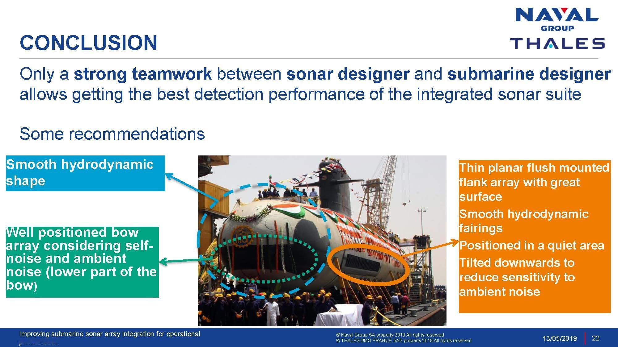 潜艇声呐要想发挥全部实力,总是一定要从开始就选好艇型,不然真装上跑起来,这边挡声音,那边有水流噪声,头都大了还不好改!来看水声大厂法国🇫🇷泰利斯公司的声呐与艇体优化双总师合作科普PPT中外舰闻