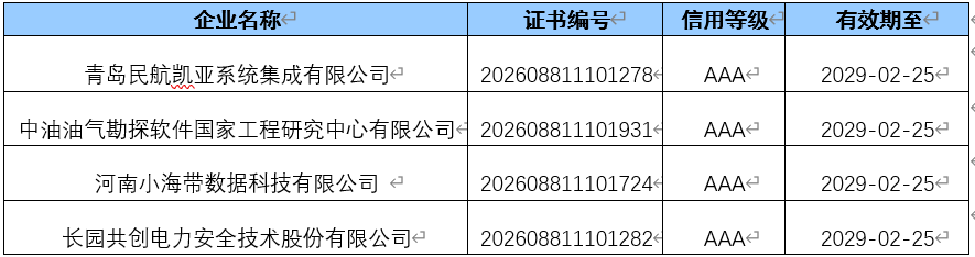 依据中国软件行业协会《中国软件服务业企业信用评价管理办法》相关规定,秉持自愿、诚信、公正、科学、严格的评价原则,经企业自主申报、各省市软件行业协会择优推荐、申报资料合规性审核、专家评审委员会专业评审等规范流程,现将2026年2月中国软件和信息技术服务业企业信用评价结果予以公示。