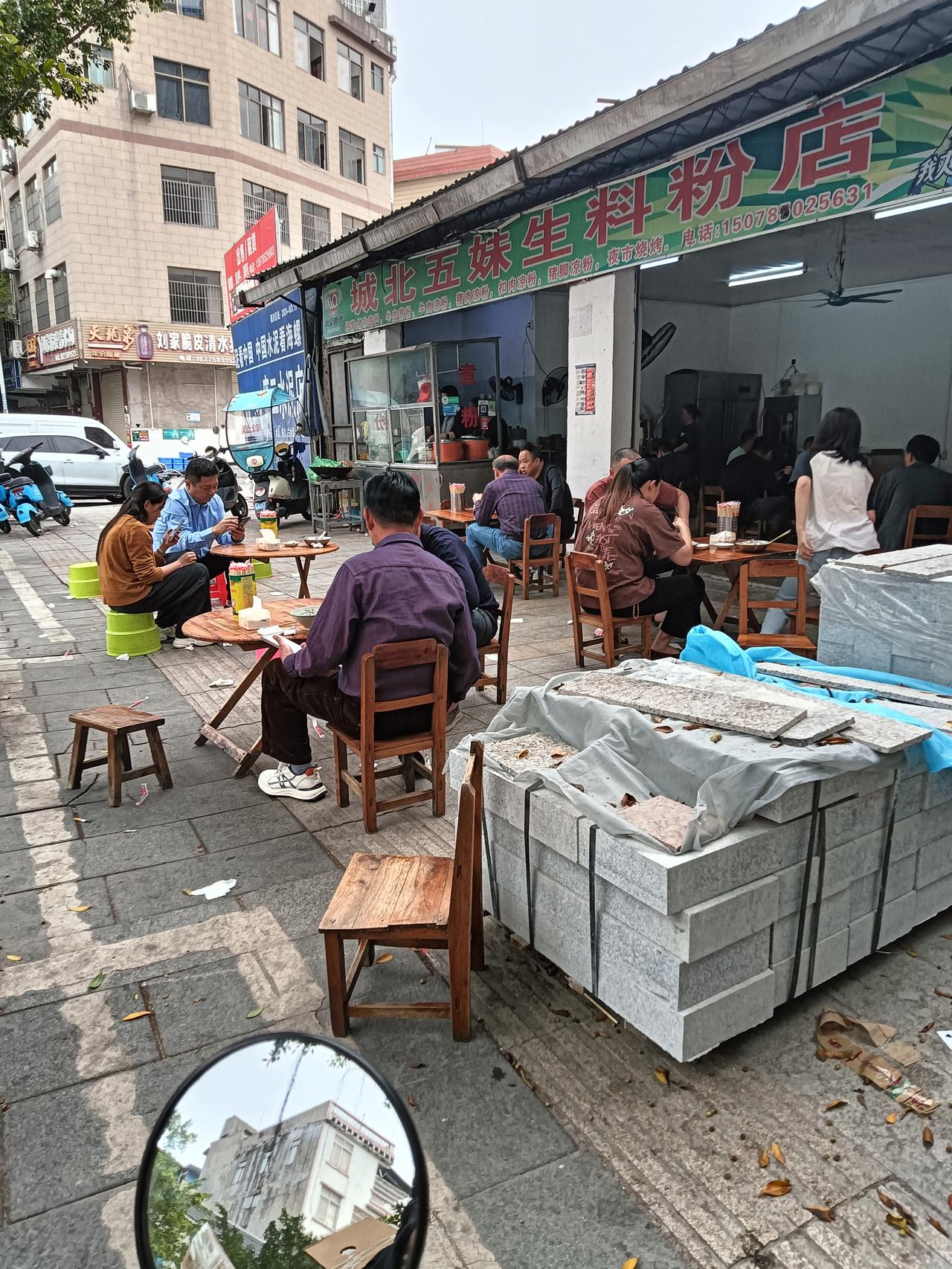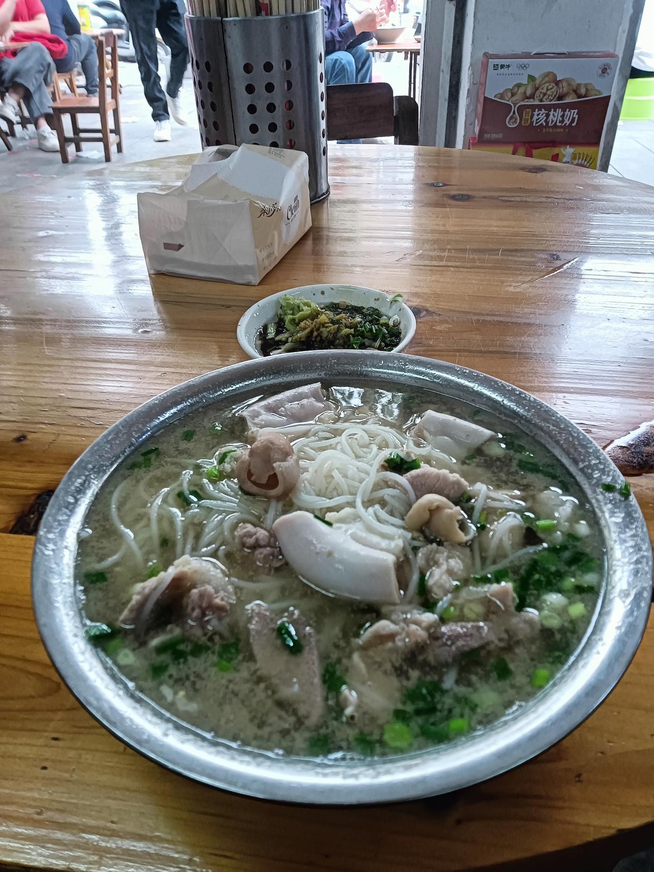 年初九经过陆川县城西主干道旁去吃碗生料粉,此摊店在县城中心区域内生意不错。所见店内外都围满了顾客在就餐,一问有河粉和米粉两种价格有10至15元不等。点碗10元的生料米粉吃味道还行,感觉陆城的生料粉比贵港的价格高些,贵港这边六至八元都有粉量也管足够。
