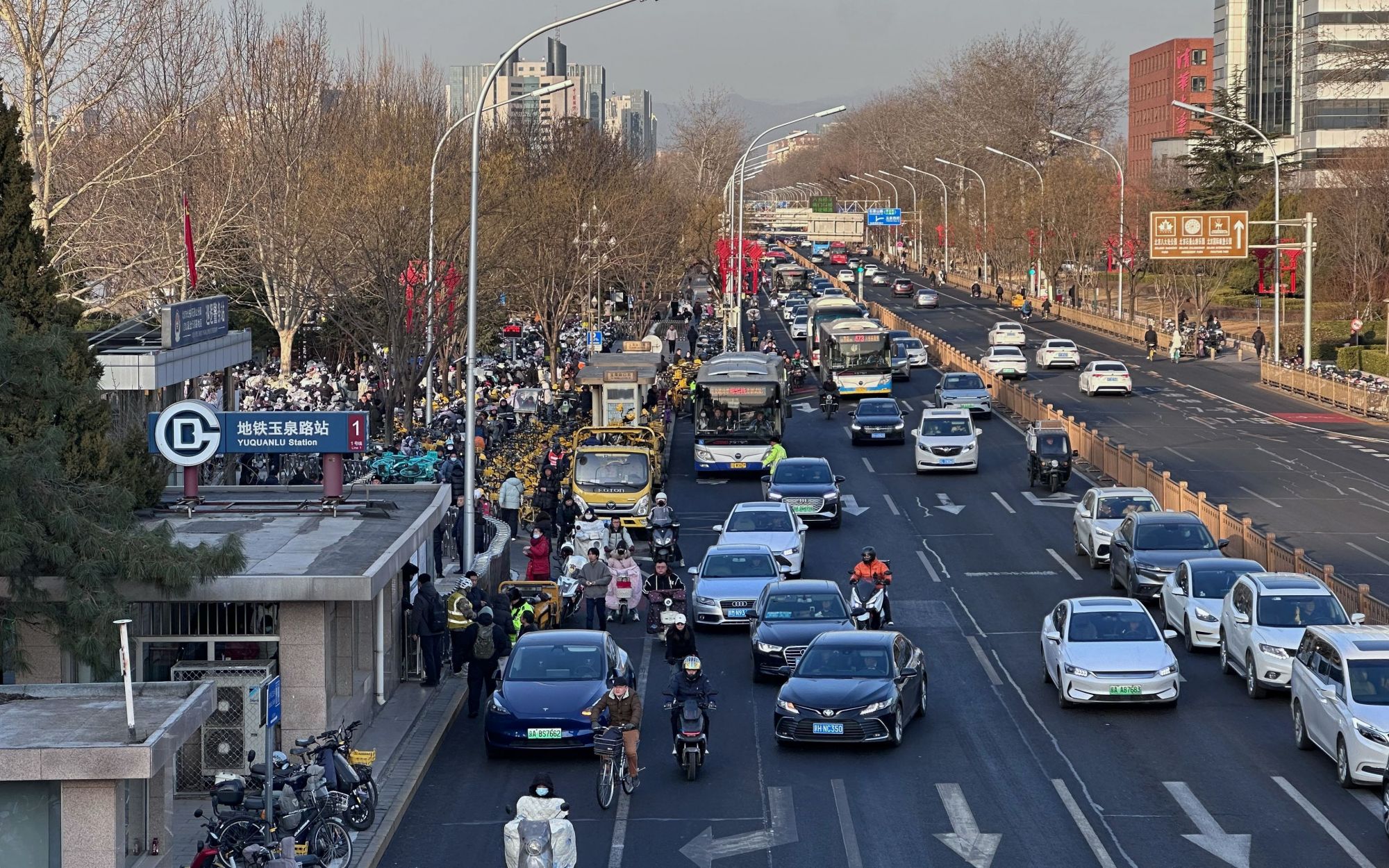 地铁玉泉路站附近,地面公交已加大运力保障。新京报记者王贵彬摄