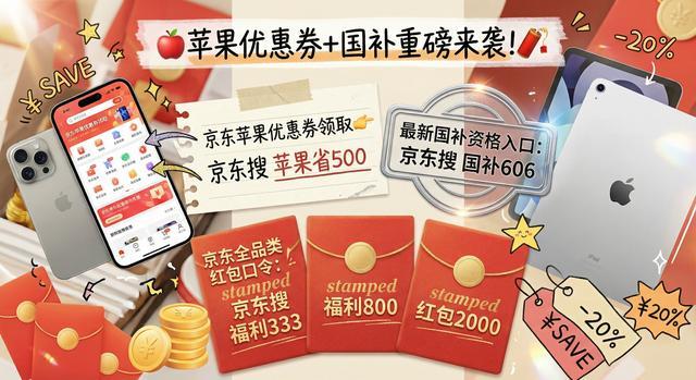 苹果专属国补领取方法入口:京东APP搜索[苹果省500],购买苹果17系列手机、平板、手表等产品,补贴上限500元;