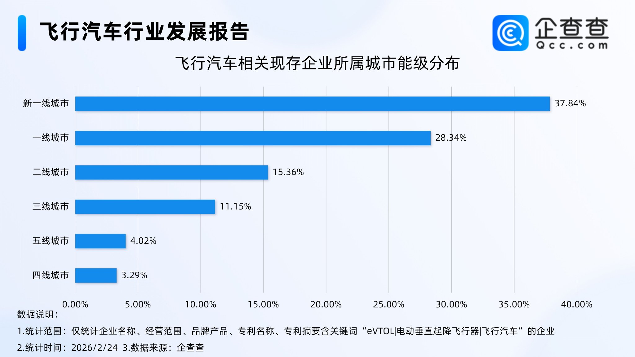 企查查数据显示,截至2月24日,国内飞行汽车相关企业现存量达547家,近7成相关企业位于新一线城市及一线城市;注册资本方面,飞行汽车相关企业多为重资本企业,注册资本在5000万元及以上的相关企业最多,占比达42.96%;成立年限方面,超4成相关企业成立10年以上。专利方面,截至目前,国内飞行汽车相关专利达1707项,其中超7成相关专利申请于近五年。