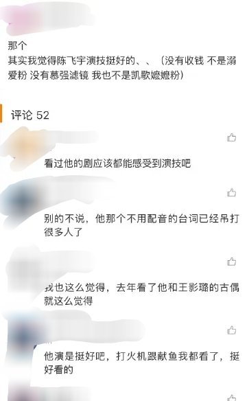 陈飞宇观众缘陈飞宇新剧广受好评,让观众直观的看到了他的变化,这波观众缘实至名归啊