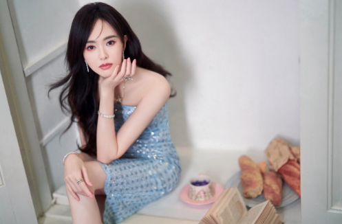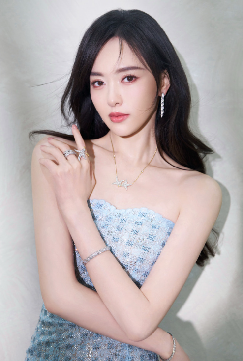 唐嫣温柔不设限:蓝纱裹身,柔美优雅。唐嫣