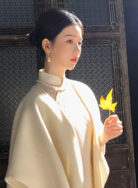 旗袍是最能勾勒东方女性韵味的服饰,穿搭讲究简约雅致、恰到好处。蛋青色这类清雅色系