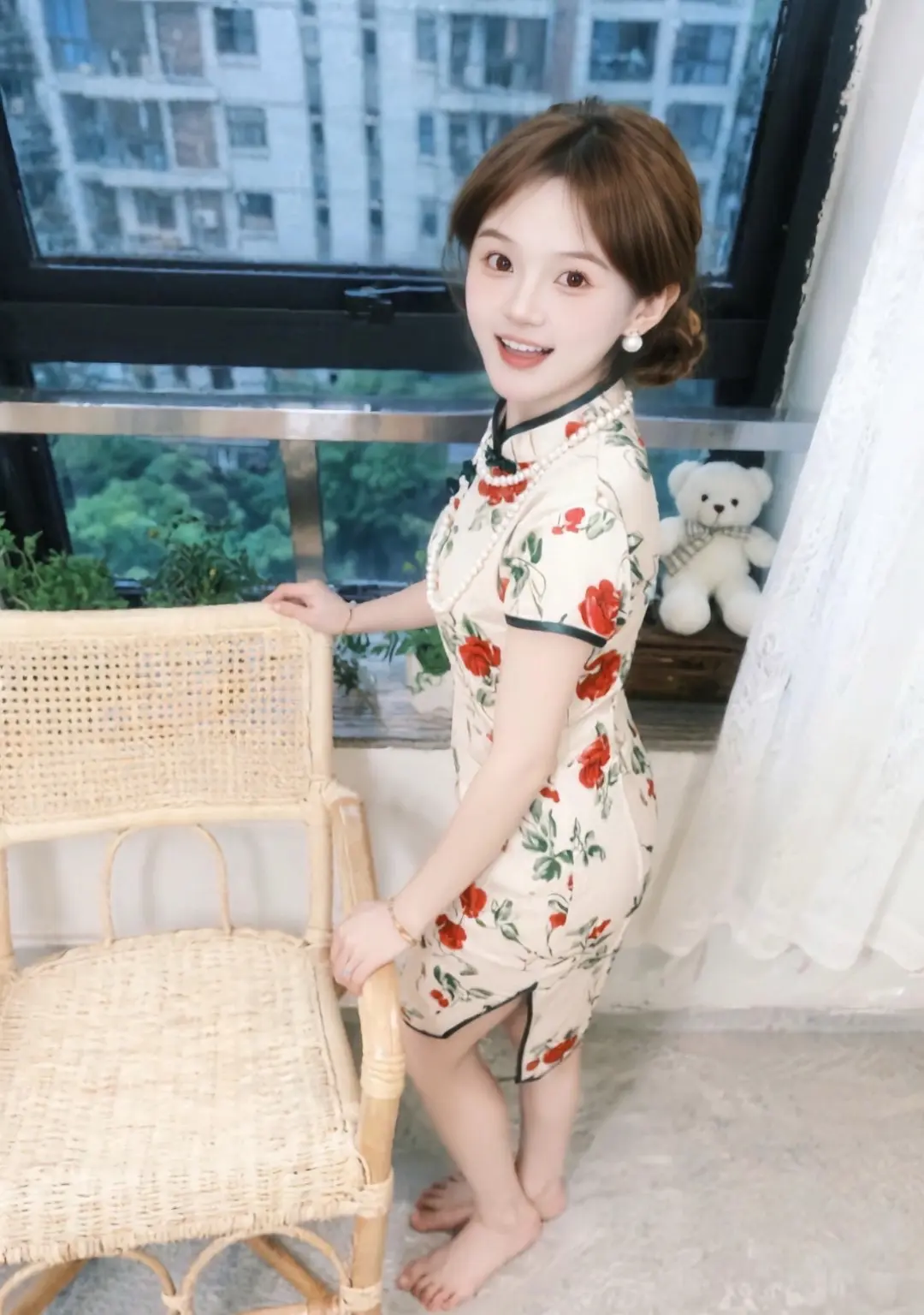 换上这件绣着金荷的旗袍,突然就懂了什么叫“东方美学自带风骨”。缎面的光泽顺着身体