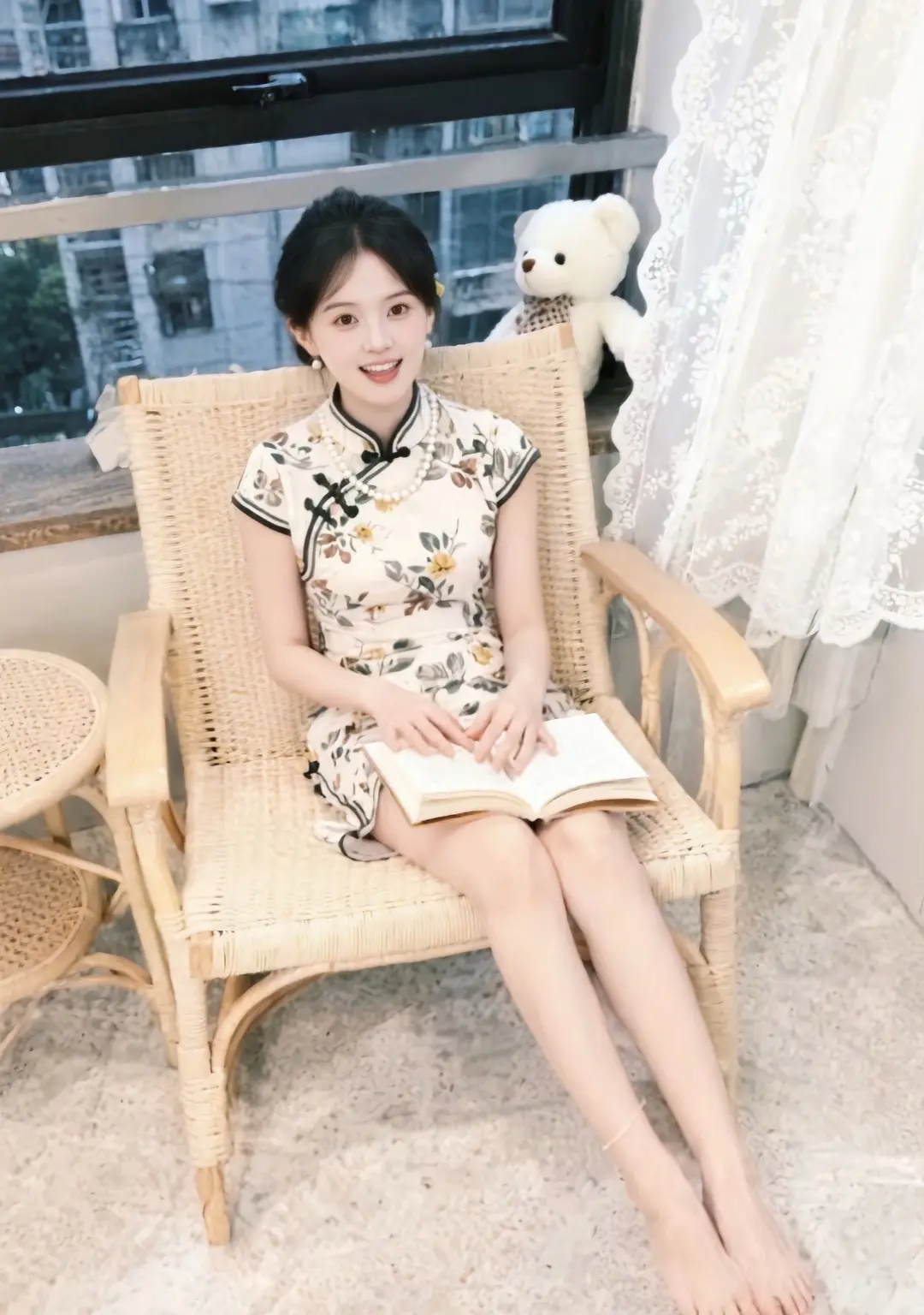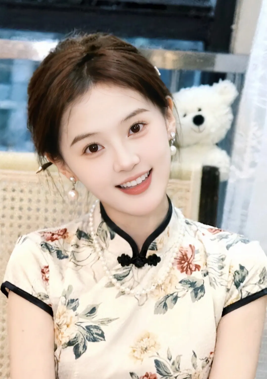 旗袍是最能勾勒东方女性韵味的服饰,穿搭讲究简约雅致、恰到好处。蛋青色这类清雅色系
