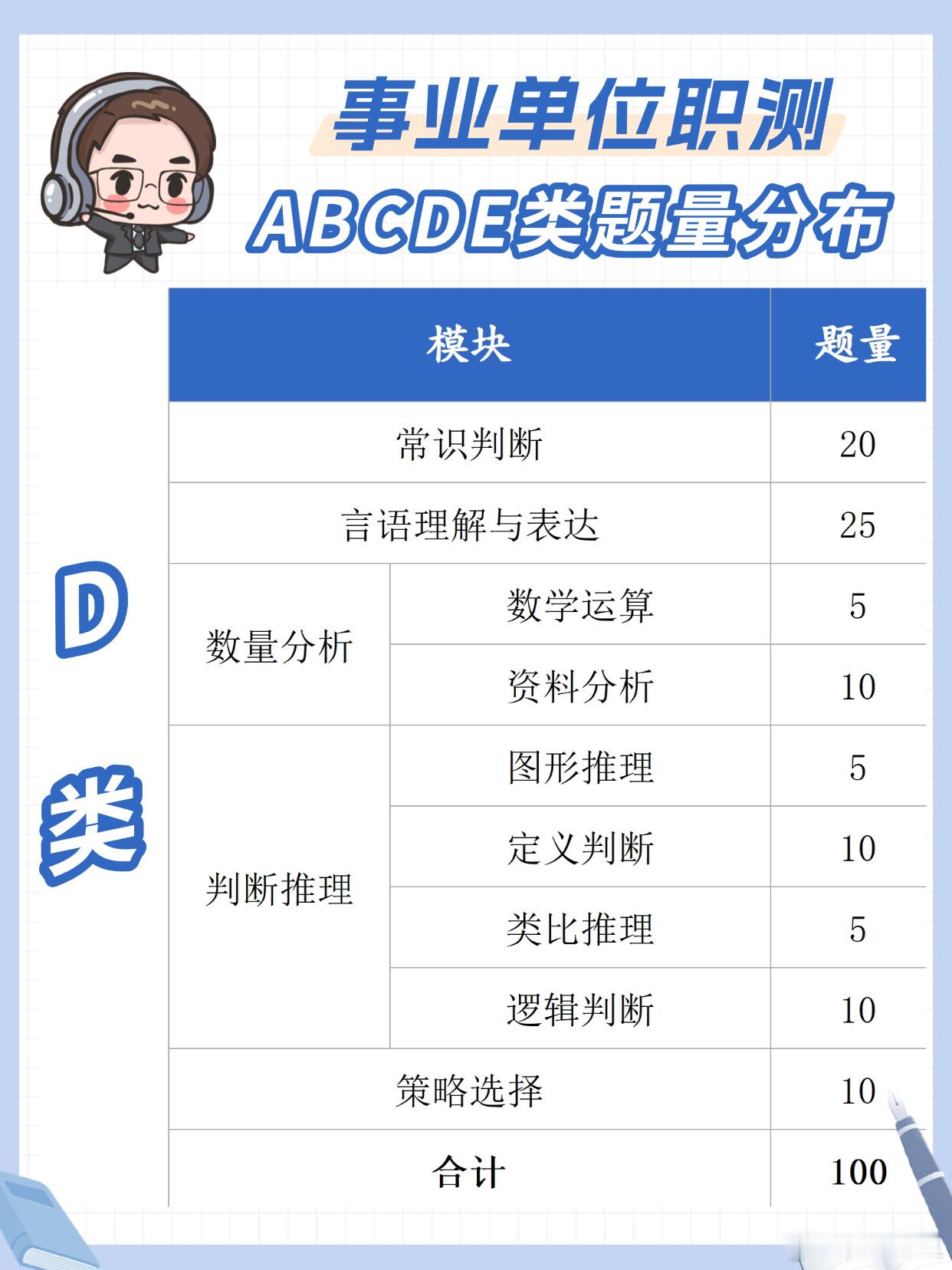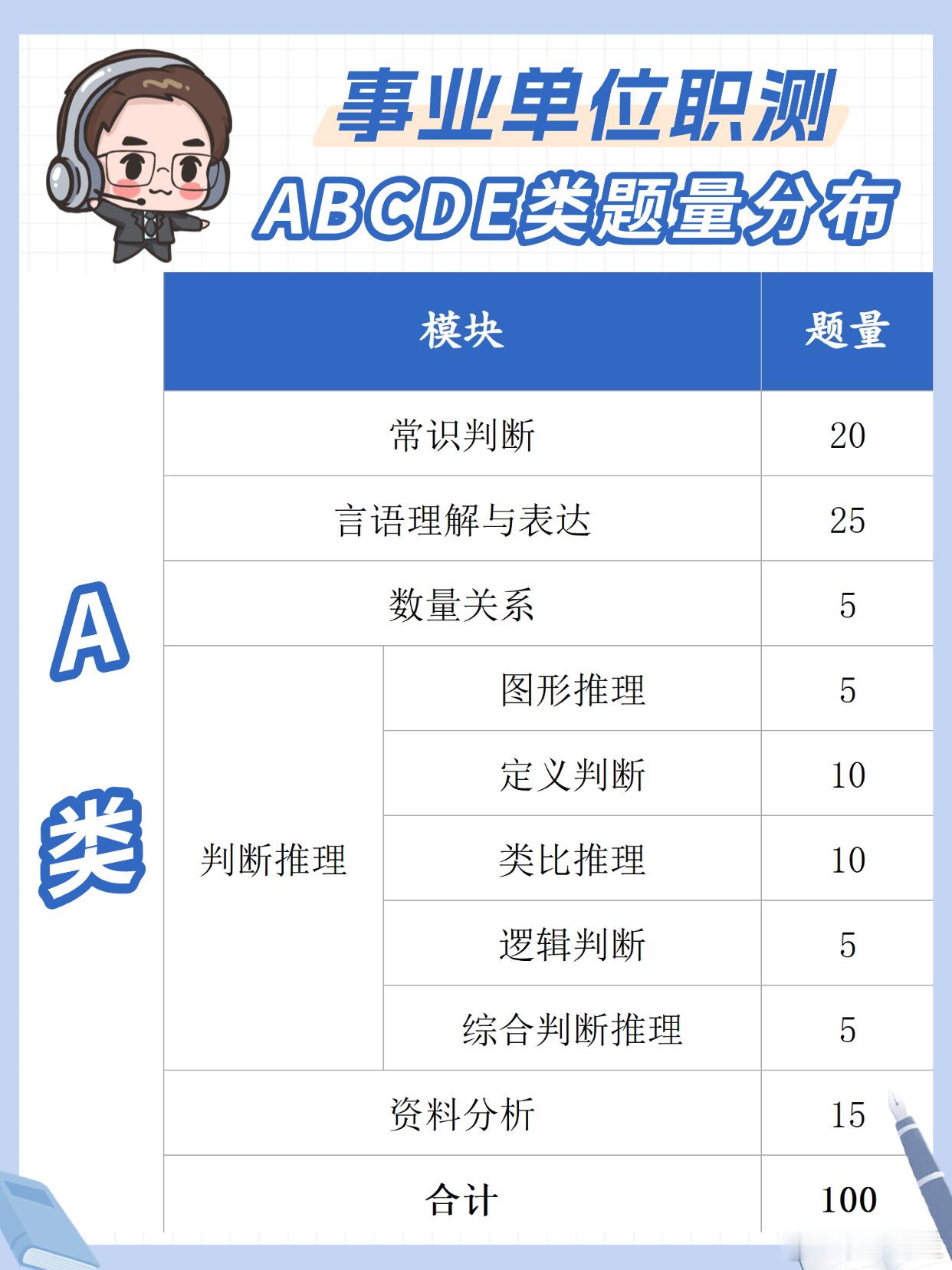 事业单位联考职测题型分布26事业单位联考笔试将于3月28号-29号举行联考职测分成A/B/C/D/E五类,共100道题职测考试时间90分钟,满分150分。目前确认参加事业单位联考的省份有:宁夏、黑龙江、广西、云南、贵州、海南、上海、安徽、吉林、山西、重庆、青海、湖北、江西、湖南、河北、辽宁、陕西、甘肃、新疆、新疆兵团PS:本图参考25上半年事业单位联考题型题量事业单位事业单位联考