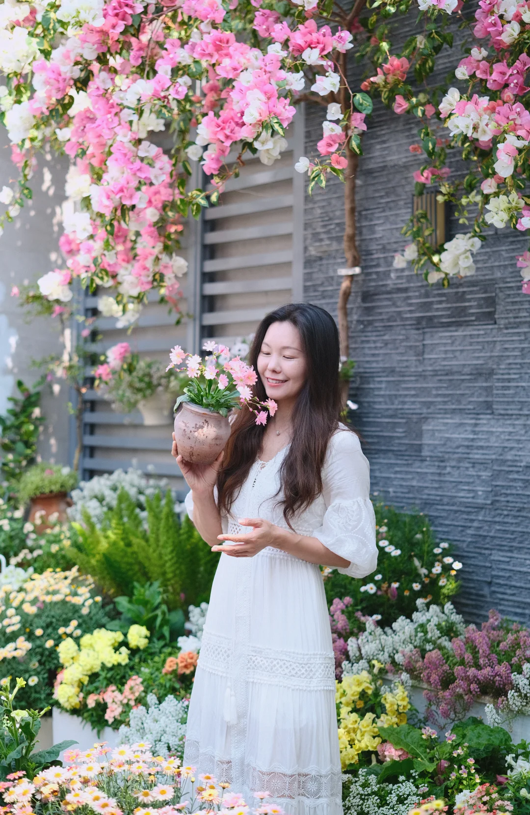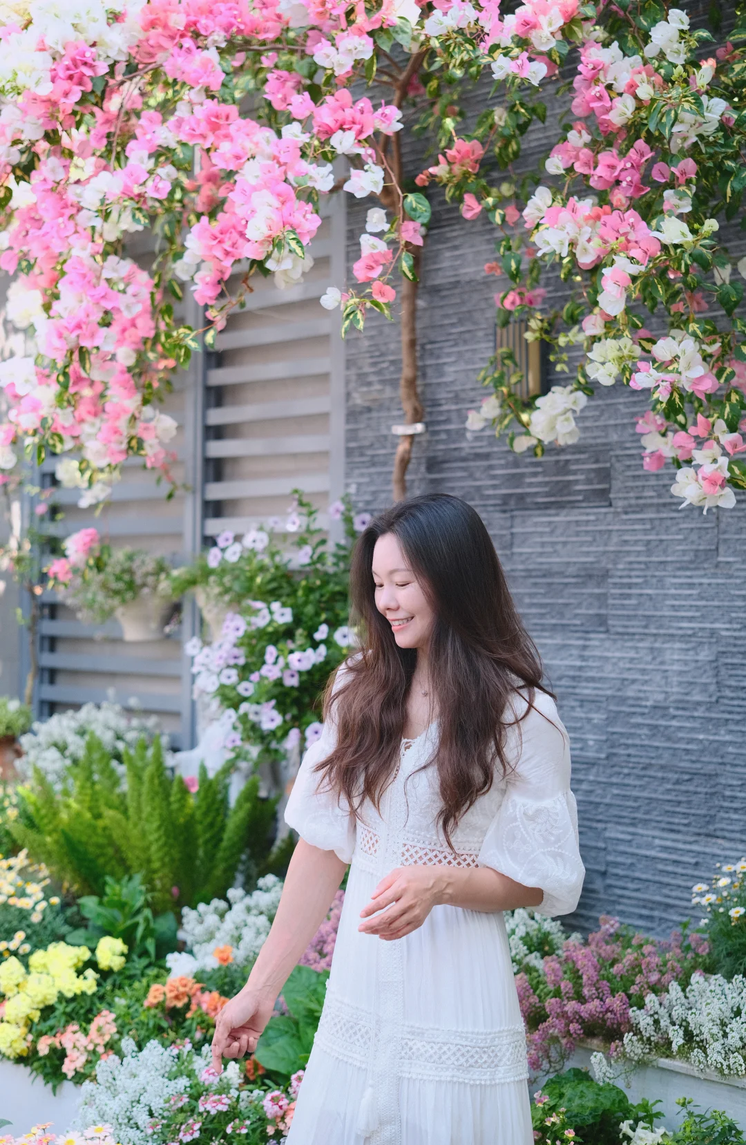很多花友都问我这是什么品种:金心橙白,叶子里面有一点金色的,开花是双色,白色和粉色,初花有点偏橙色,花后期就是粉色了。属于勤花品种,长势快,仙气飘飘。图1.3.4是今年的,图2是2025年2月,一年时间从拇指粗长到了我手腕粗。我是种在花池里面的,泥土多,阳光好,所以长的很快。最重要的是我爷勤快施肥,10-15天撒一次复合肥,时不时埋一点骨粉羊粪啥的。 还有姐妹说返祖问题:有可能返祖成橙粉公主,但是概率很低,再说,橙粉公主其实也很好看哈哈哈。