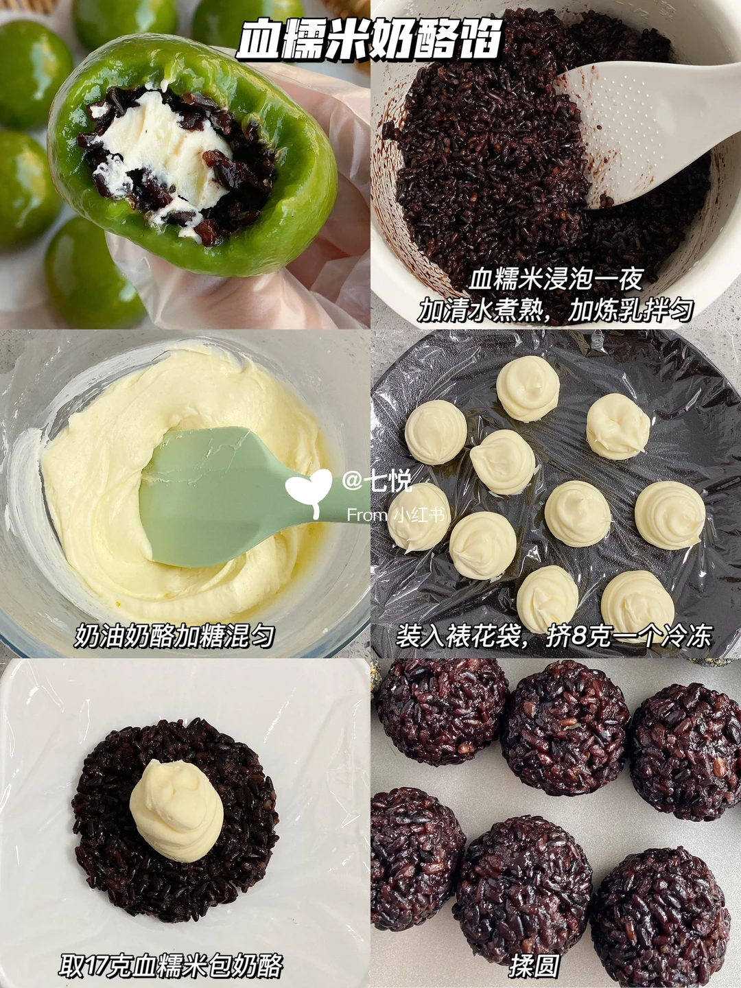🔅血糯米170g(煮熟后),炼乳适量,奶油奶酪80g,细砂糖8g