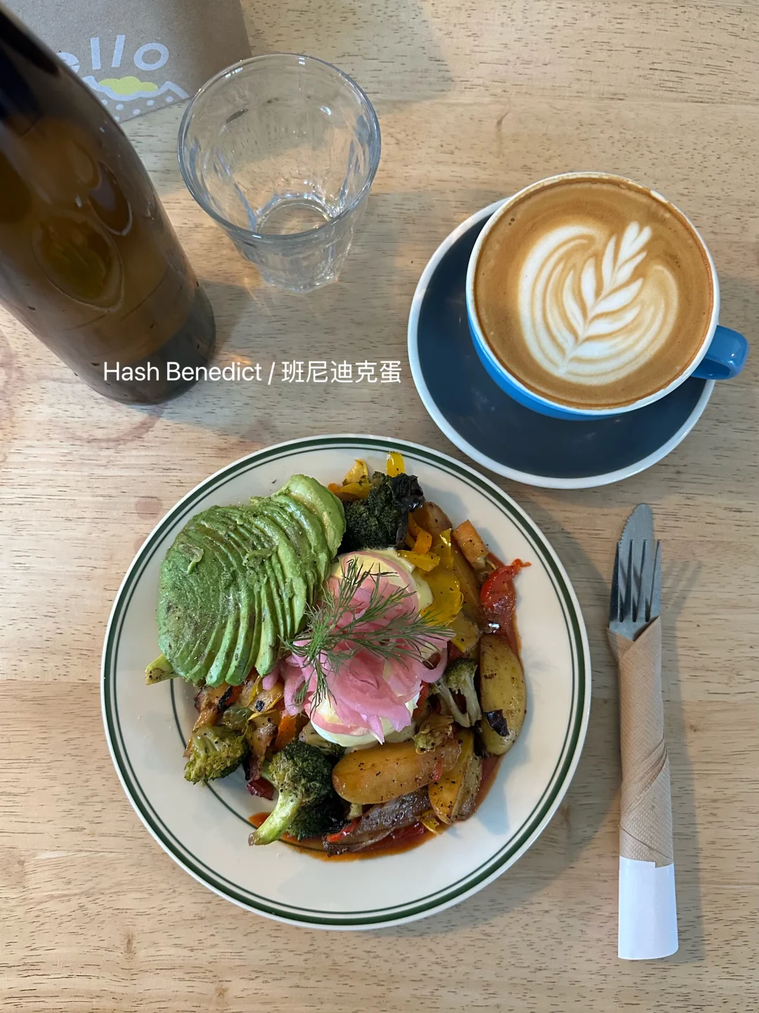 这道跟传统的班尼迪克不一样,风味偏亚洲口味,烤蔬菜土豆,健康美味