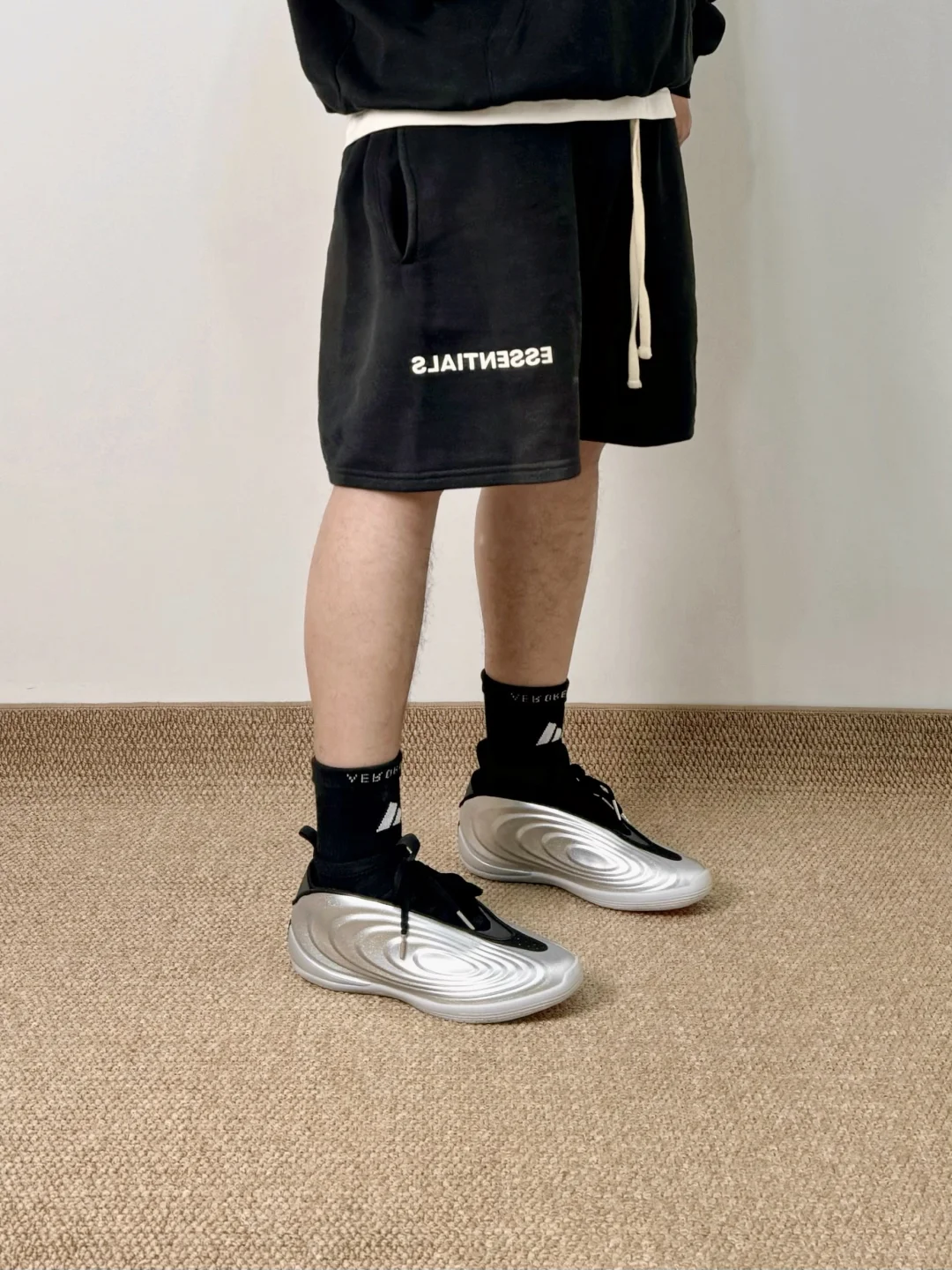 🌀球星签名鞋能出到十代,都是绝对的里程碑;相较于上一代,vol.10仍然延续了内袜套加TPU外壳,这次的同心圆设计是真的戳中我,搭配金属银就很赛博朋克 . —————— . 👔Fear of God essentials // M . 🩳Fear of God essentials // L . 👟Adidas Harden vol.10 // 43 . —————— . ✏️Taille:178cm 75kg // EU42 CHN265