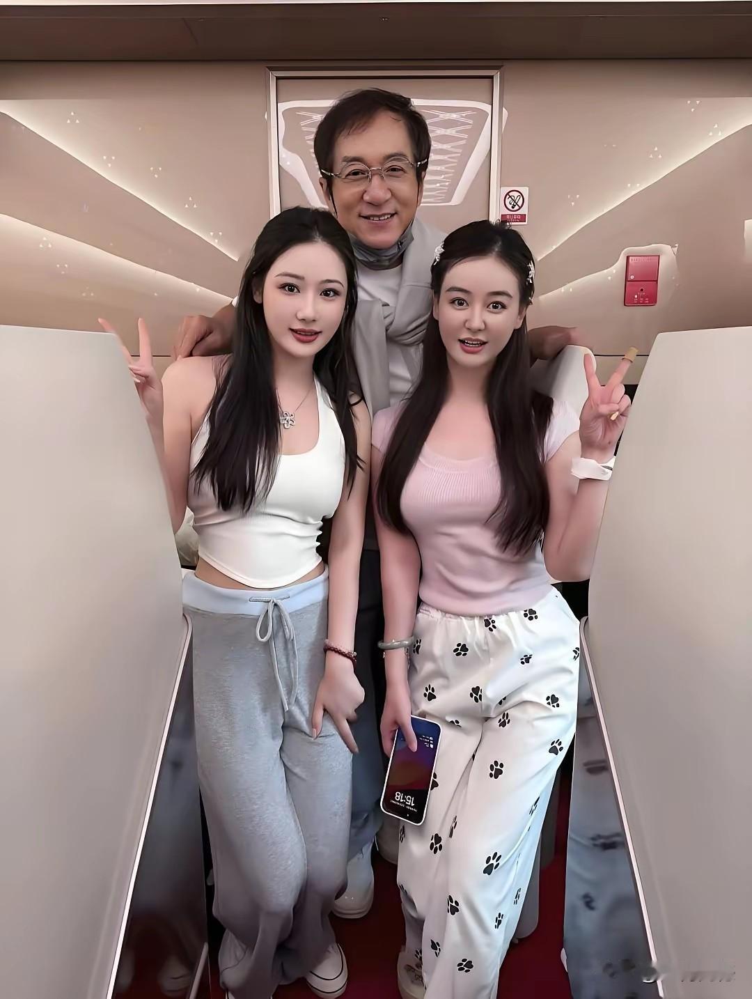成龙大哥太慈祥了,人长得非常的和善,据说这是在高铁上偶然被认出来了,成龙大哥抱着