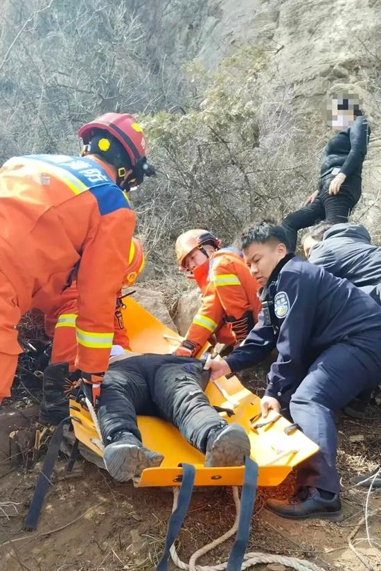 崖底空间狭小,施救难度极大。为避免造成二次伤害,救援人员每一个动作都格外小心。民警轻声安抚、稳定伤者情绪,与消防队员默契配合,细心固定包扎受伤部位,将伤者稳稳安置在担架上。