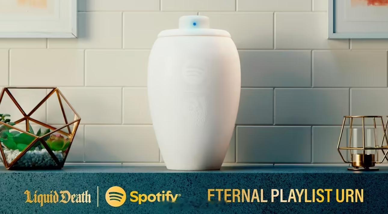 骨灰盒音箱可还行,Spotify 与液态死亡联手推出的,限量发售 150 个,售