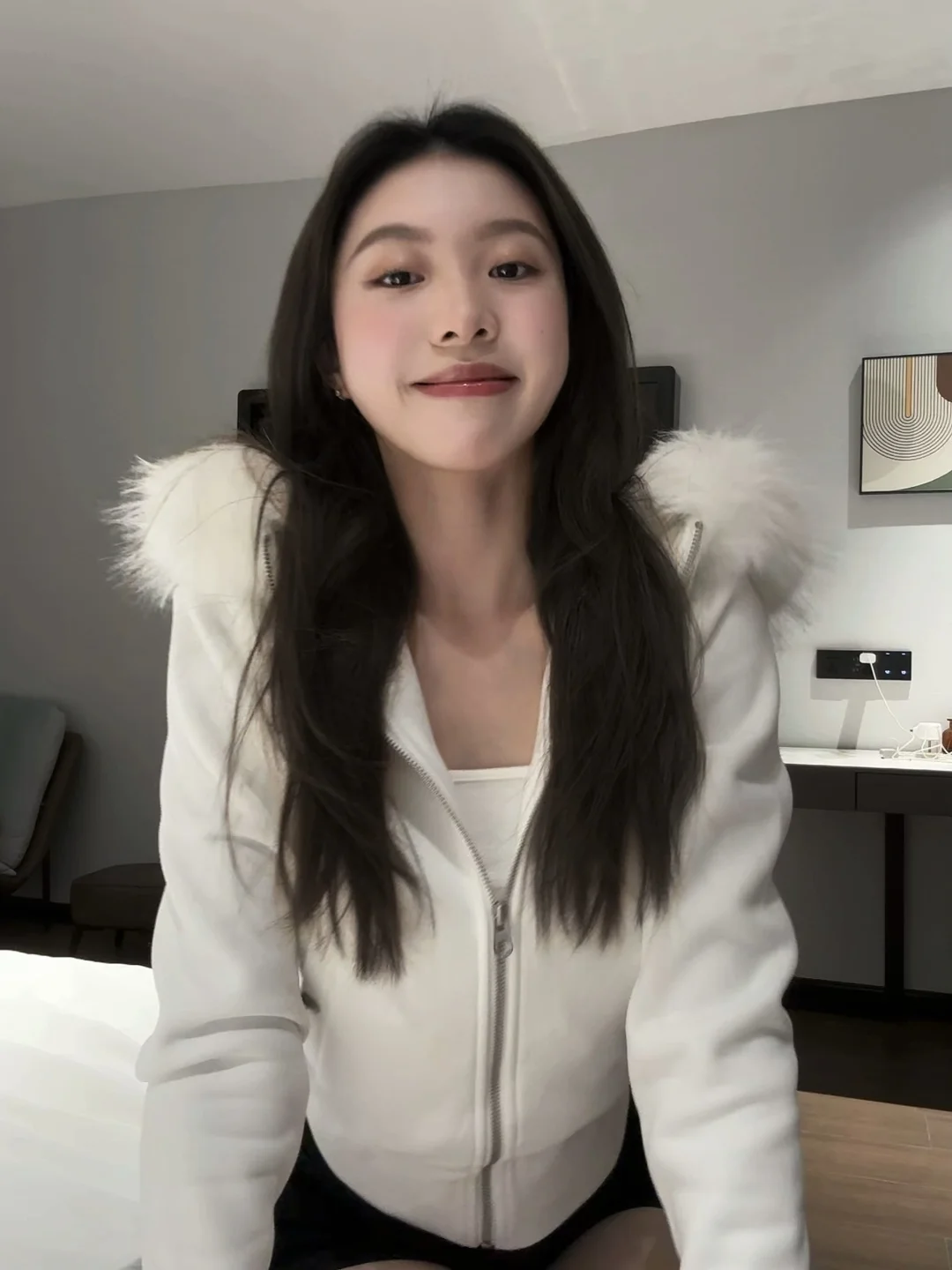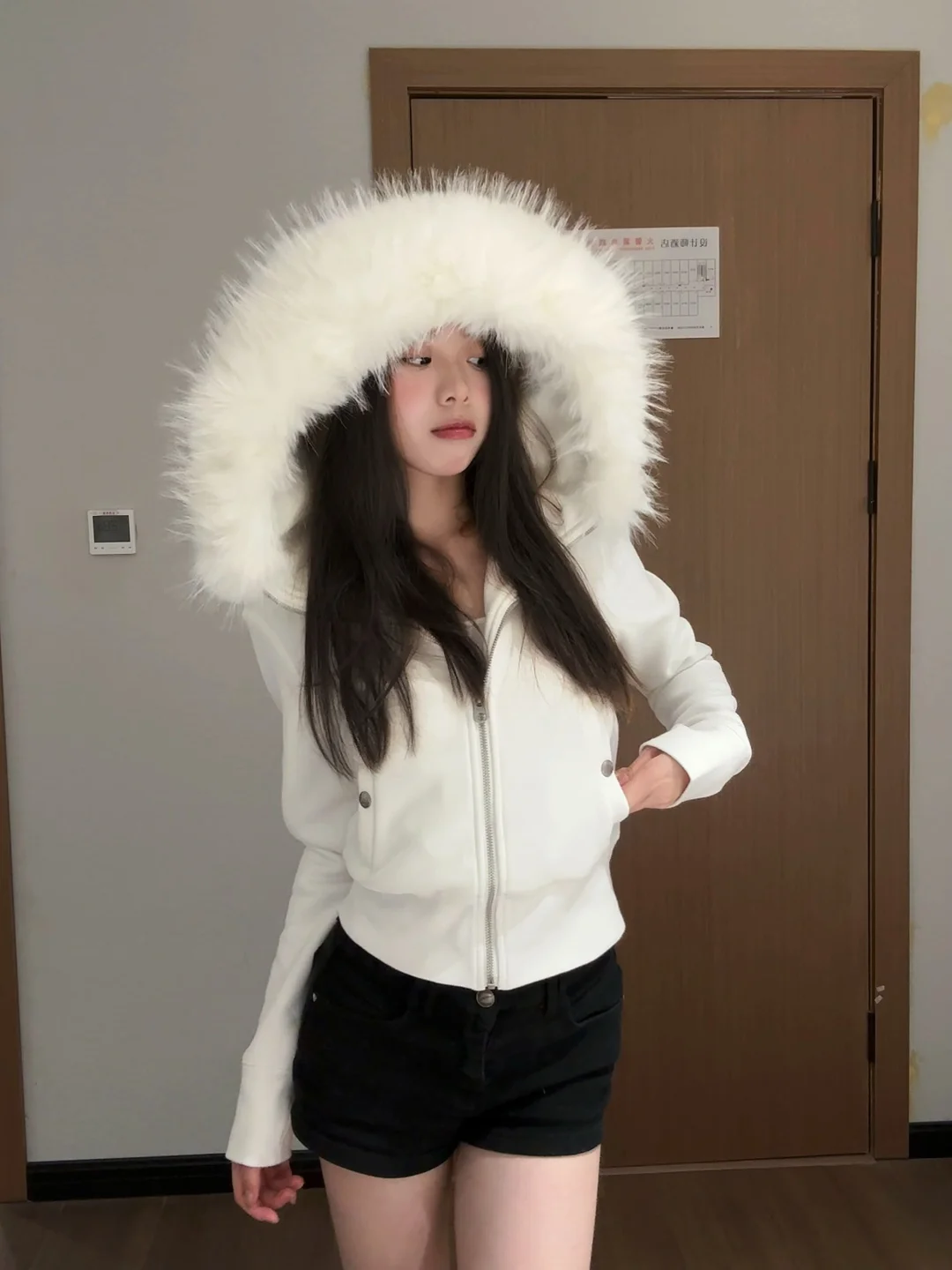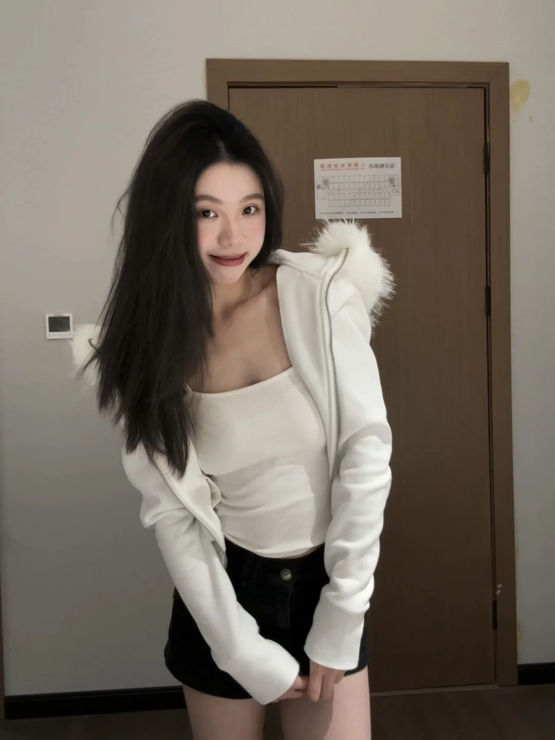 “宅家也能拍出氛围感📸 简单的白外套+黑短裤,舒服又好看 不用刻意凹造型,松弛感才是王道~