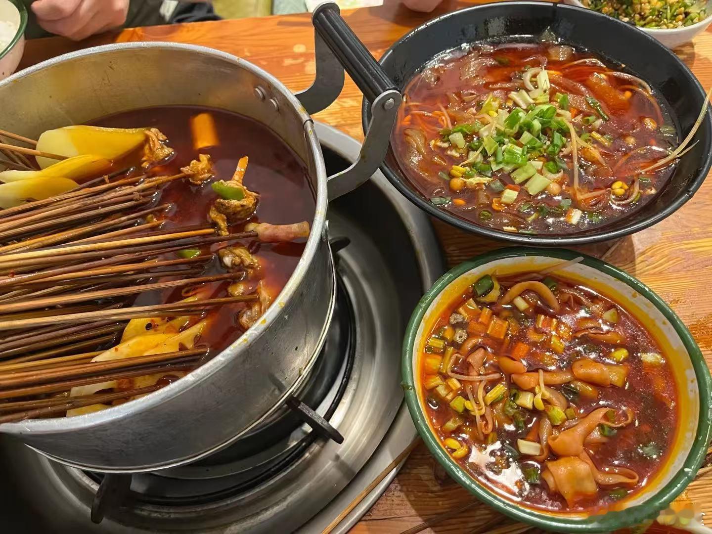 巷子里锑锅麻辣烫:这家可以吃冷锅串串,也可以吃现煮串串,菜品都是现串的比较新鲜,味道很香有点辣,推荐牛肉系列,还有脑花、土豆也好吃。四川美食