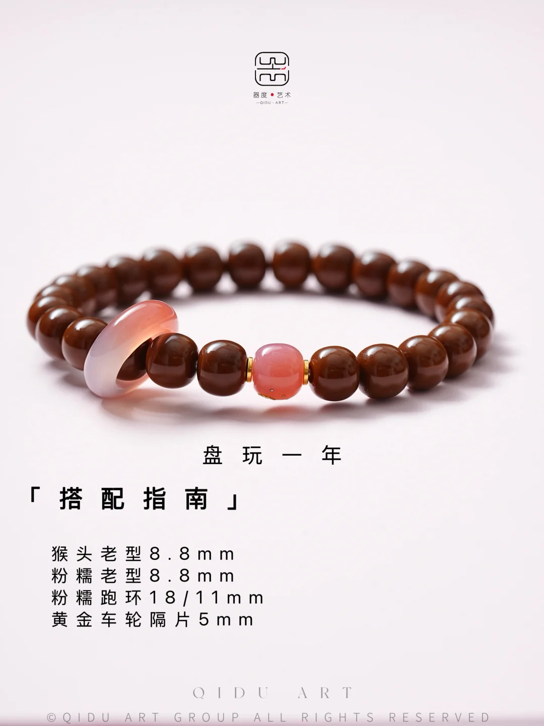这是一期少女心很膨胀的猴头搭配(咳咳咳..) 其实年前就搭配好了这一组, 粉色少女心总是在接近青春的尾声姗姗来迟.. 配饰以「粉糯玛瑙」为主体,配合不同器型不同盘玩阶段的猴头,多样呈现猴头的n种粉色可能性[氛围感R] 个人觉得猴头是树籽类里很耐玩耐造的,没有核尖那么娇贵[完啦R]...入门强推猴头,选对料子和商家,盘玩体验直接拉满[棒R]