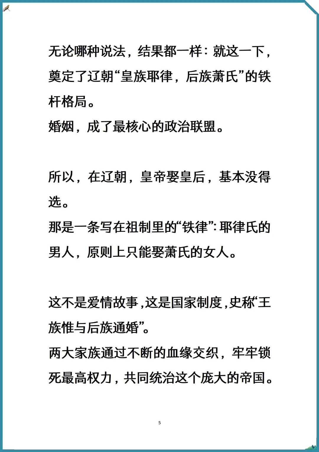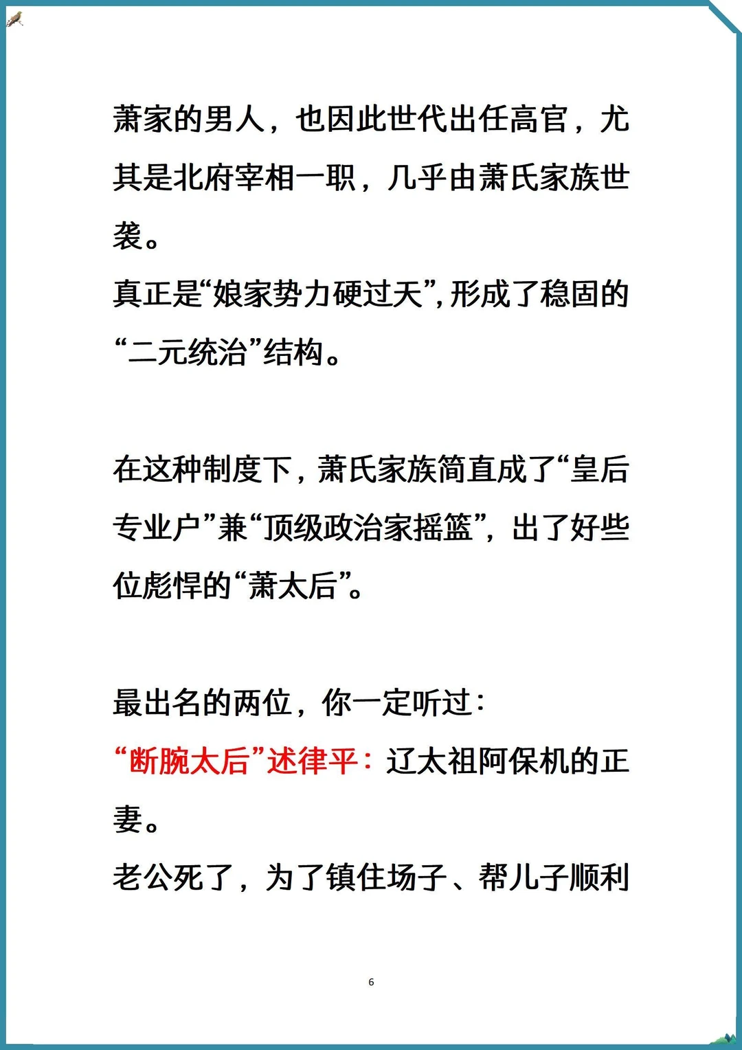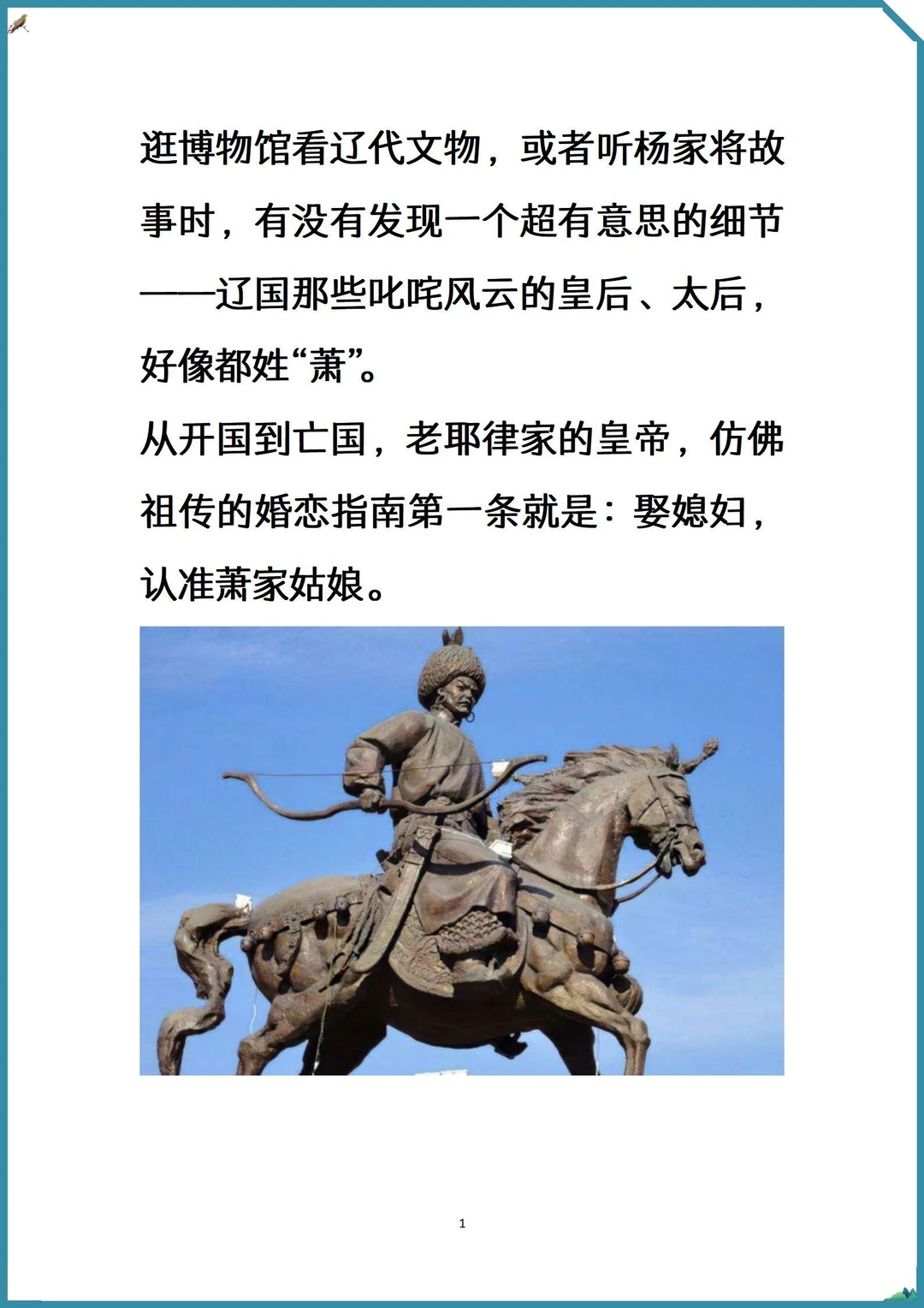 记录吧就现在 [萌萌哒R]逛博物馆看辽代文物,或者听杨家将故事时,有没有发现一个超有意思的细节——辽国那些叱咤风云的皇后、太后,好像都姓“萧”。 [微笑R]从开国到亡国,老耶律家的皇帝,仿佛祖传的婚恋指南第一条就是:娶媳妇,认准萧家姑娘。 [自拍R]这不是单纯的巧合,这背后,是一段贯穿辽朝两百多年的、比宫斗剧还硬核的“国家顶层设计”。 [暗中观察R]今天就来唠明白,为啥大辽的后宫,被萧家“承包”了。