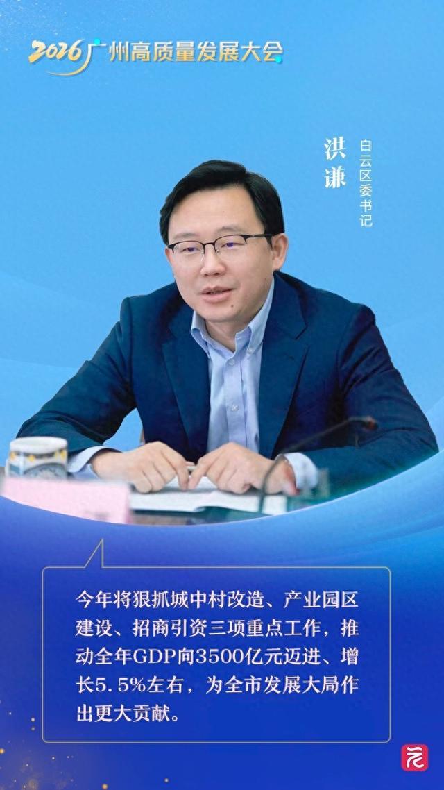 2月25日,广州召开全市高质量发展大会。会上,白云区委书记洪谦表示,在省委省政府、市委市政府坚强领导下,白云区坚持开局就要冲刺、全域全年发力,今年将狠抓城中村改造、产业园区建设、招商引资三项重点工作,紧盯“目标、指标、对标”,推动全年GDP向3500亿元迈进、增长5.5%,完成固投1400亿元、增长5%以上,规上工业、社零增长5%,外贸进出口总值增长10%以上。