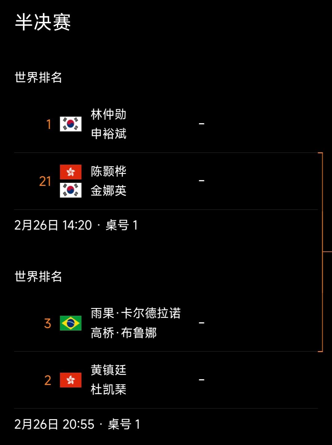 黄友政/陈熠无缘混双四强! WTT新加坡大满贯赛 混双四分之一决赛结束,国乒年轻组合黄友政/陈熠0比3不敌跨协会组合金娜英/陈颢桦止步混双八强! 黄友政/陈熠排名混双第十,两人也配合参加过比赛,本站发挥欠佳,失去了大分,世界排名不能有大的提升了! 本站两人都是身兼三项,黄友政男单已出局,混双又出局了,只能寄希望在男双项目了,加油吧! 半决赛对阵: 林钟勋/申裕斌vs陈颢桦/金娜英 黄镇廷/杜凯琹vs雨果/高桥布鲁纳 巴西组合有明显提升!