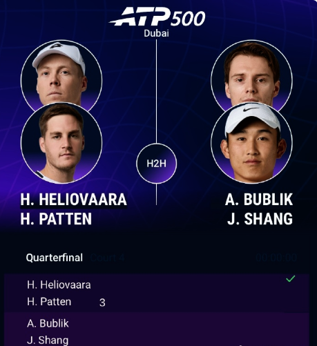 虎扑02月25日讯商竣程与布勃利克在2026年2月25日举行的迪拜ATP500男双第二轮比赛中退赛。