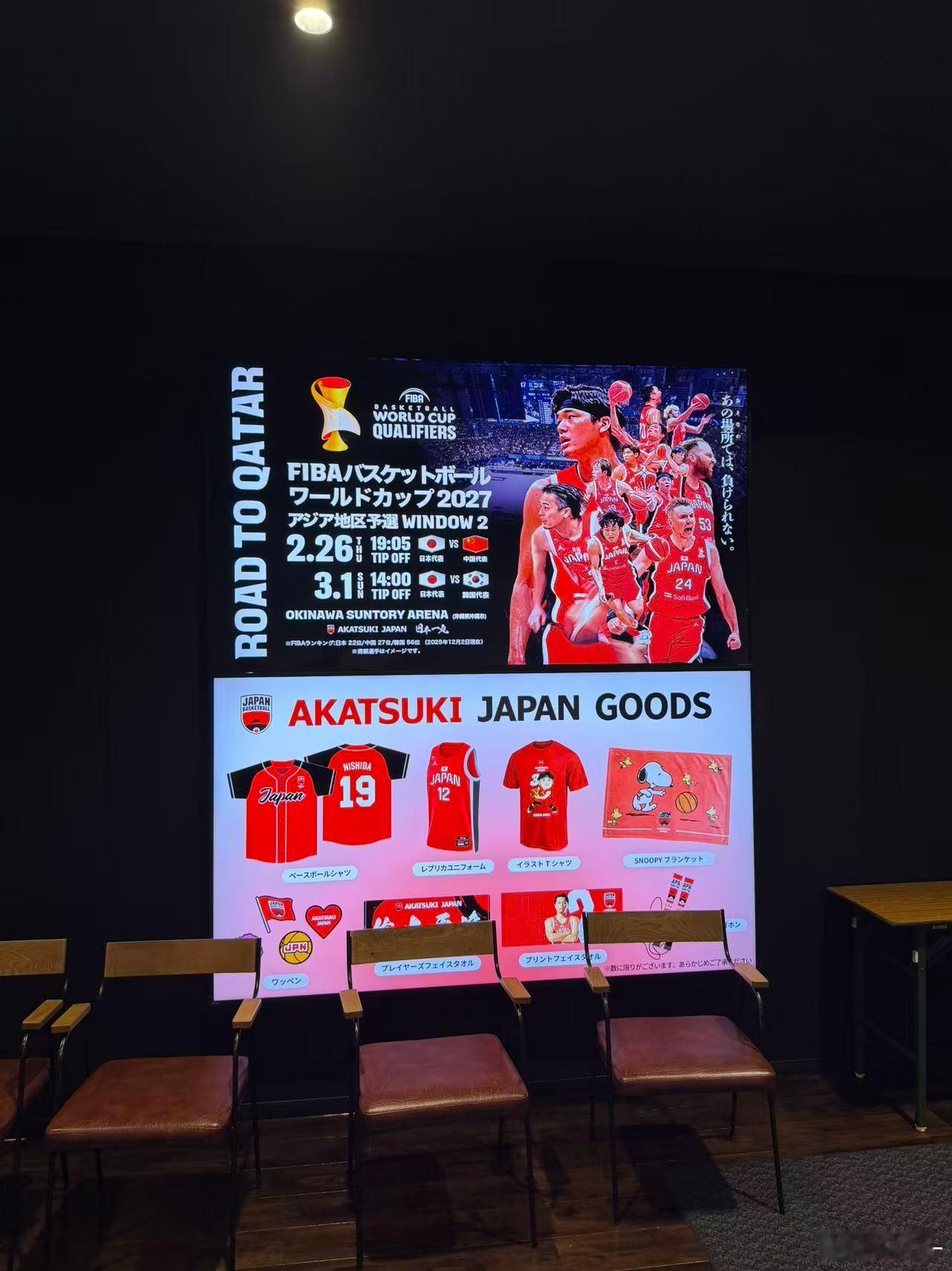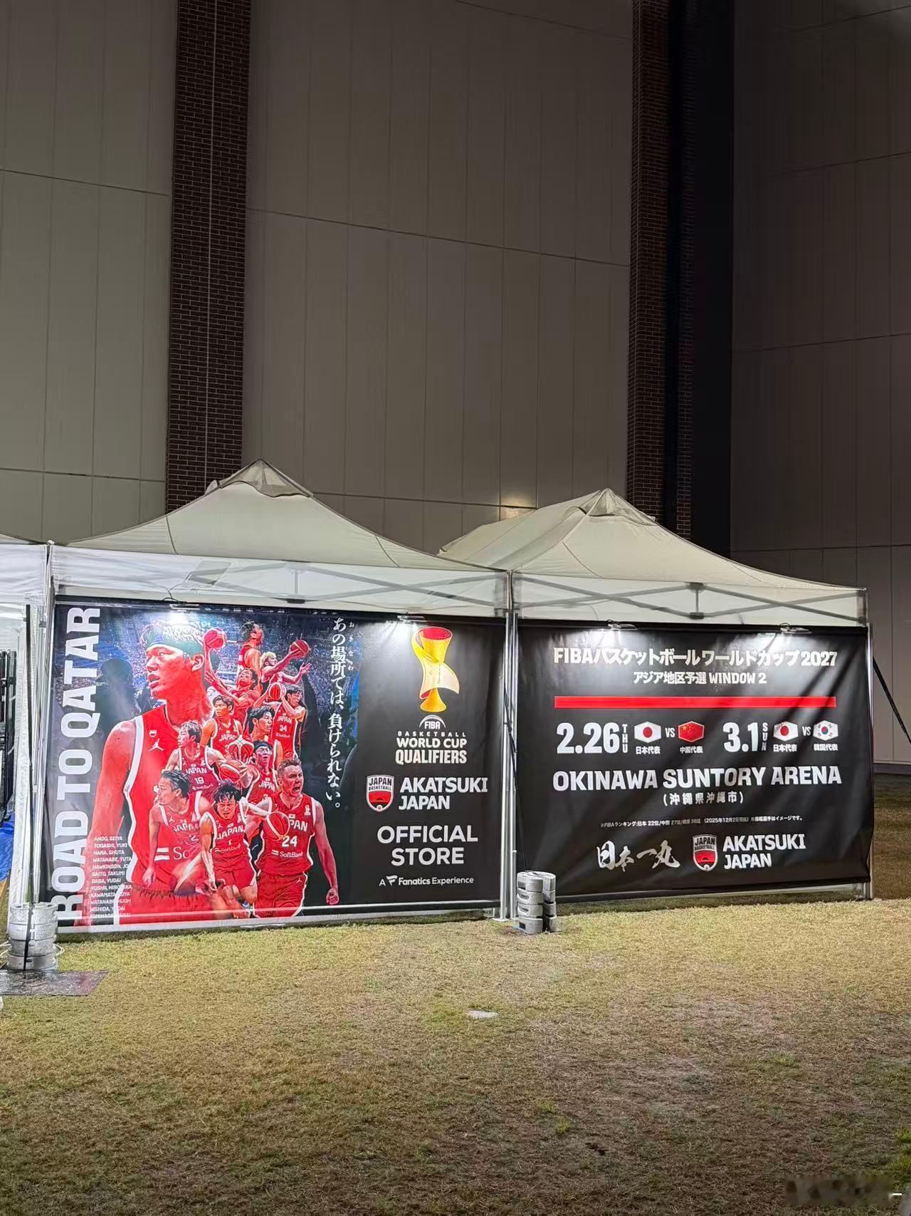 明天中日对决,日本男篮周边的布置,主场氛围浓厚。日本男篮vs中国男篮中国男篮