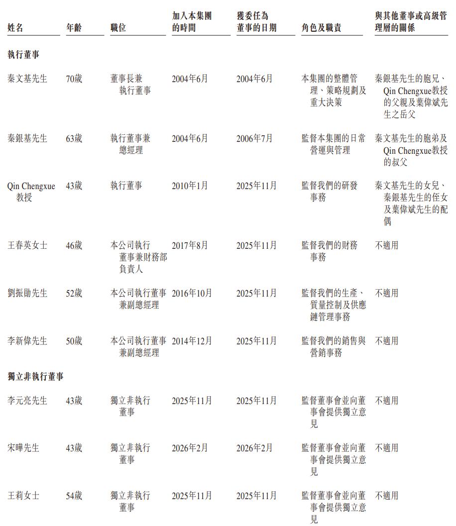 于2025年10月15日,董事长兼执行董事秦文基先生与其胞弟秦银基先生(总经理兼执行董事)订立一致行动协议。截至2026年2月20日,(i)秦文基先生可通过彼于27,000,000股股份的直接权益,可行使公司已发行股本总额约90.0%的相关表决权;及(ii)秦银基先生可通过彼于3,000,000股股份的直接权益,可行使公司已发行股本总额约10.0%的相关表决权。