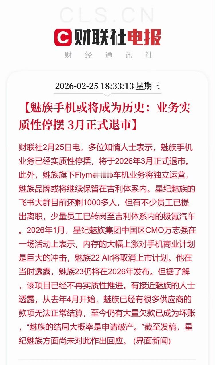 这事儿这两天确实传得凶,脉脉上已经有人把细节爆出来了。魅族手机业务整体裁撤,品牌