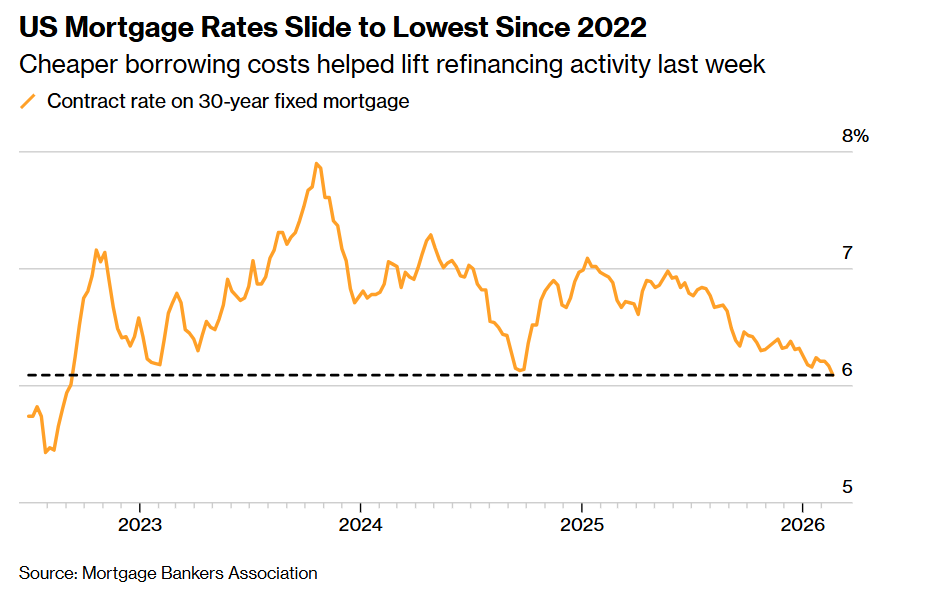 然而,今年以来抵押贷款利率累计下降接近四分之一个百分点,但是在持续以来的高房价,以及对通胀的担忧在全美持续回荡、美国消费者们仍然担心失业以及其他宏观经济因素,他们倾向把钱花在必需品以及他们认为有价值的新商品上,抵押贷款利率下行仍未能激发买家们大举入场,这表明美国住房市场仍难以积聚制造动能。MBA衡量购房申请的指标上周下降4.7%,创下至自2025年4月以来的最低水平。