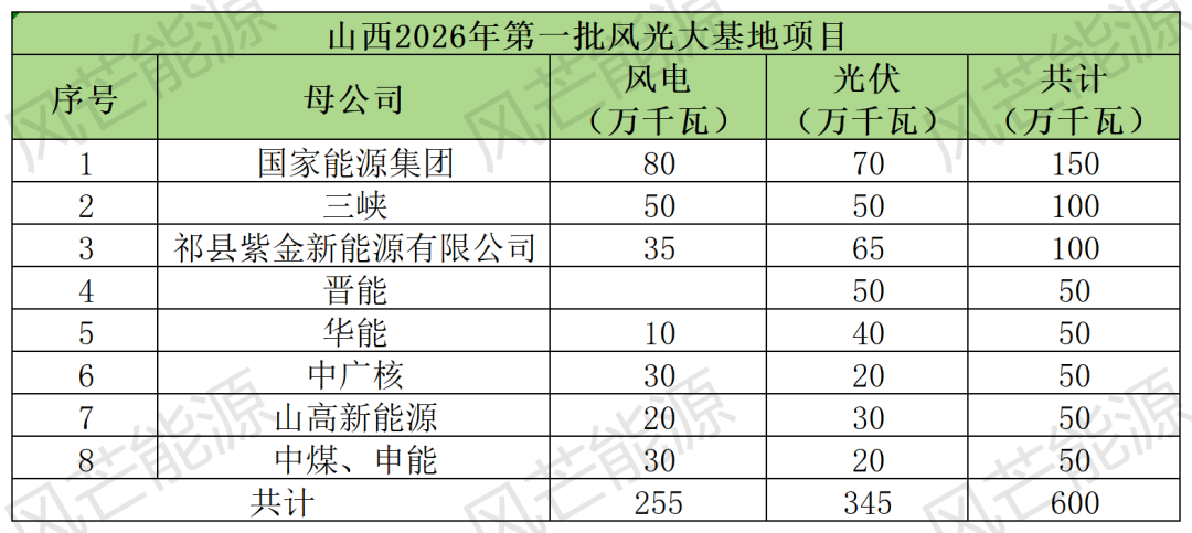 风芒能源获悉,近日,山西省能源局发布《关于下达山西省2026年第一批大型风光基地项目建设计划的通知》。