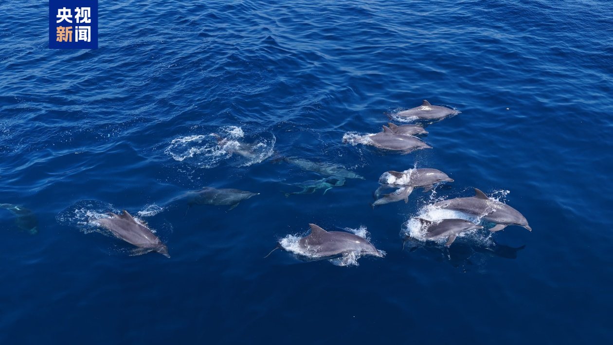 海洋中,十余只野生海豚在澄澈海水中结伴巡游,时而潜入水中追逐鱼群,时而跃出海面嬉戏,状态放松、活跃度高,在海域内停留近30分钟后,结伴向远海缓缓游去。作为海洋生态系统健康状况的旗舰物种,海豚对栖息海域的水质、饵料丰富度、生物链完整性要求极高,其现身近海,正是蜈支洲岛周边海域生态环境持续向好最直观的印证。