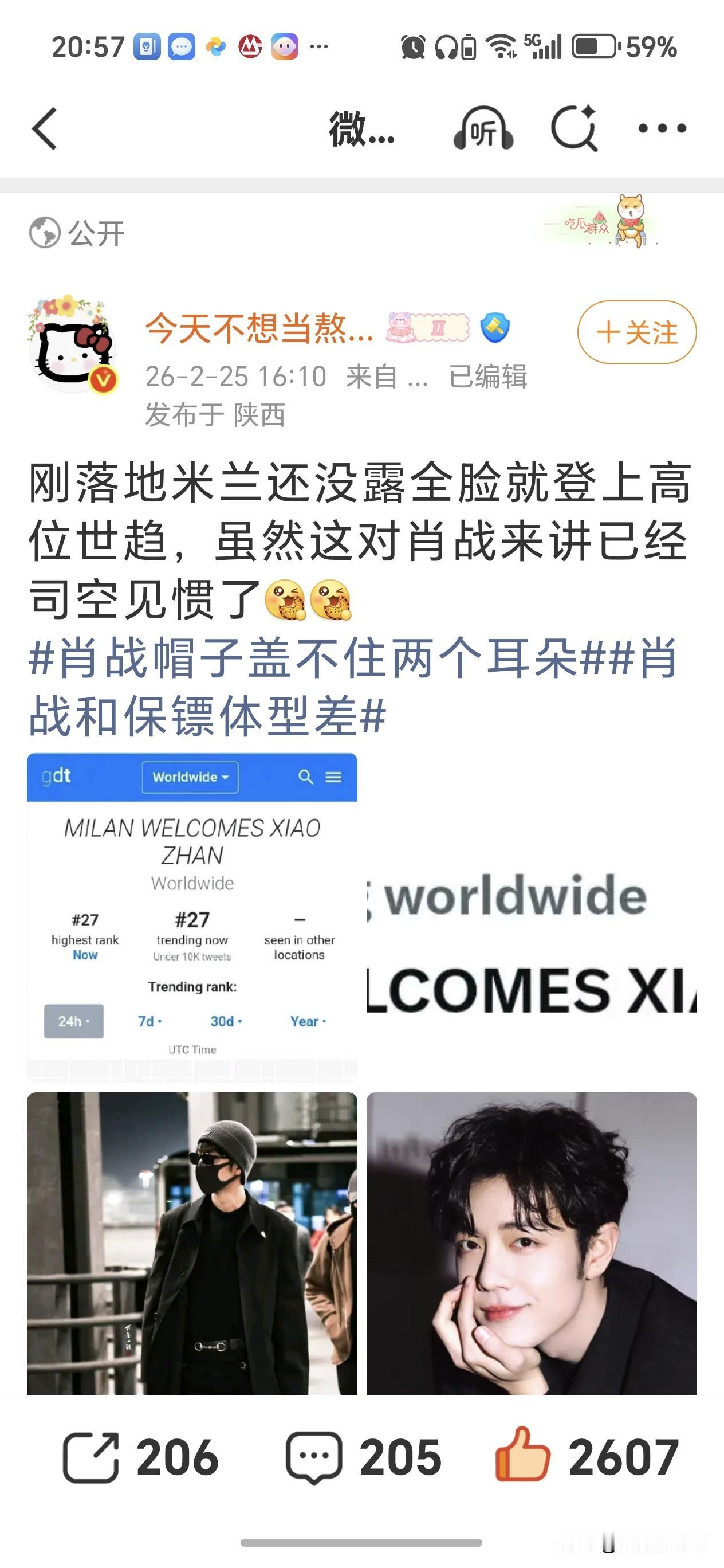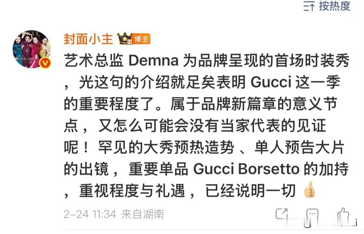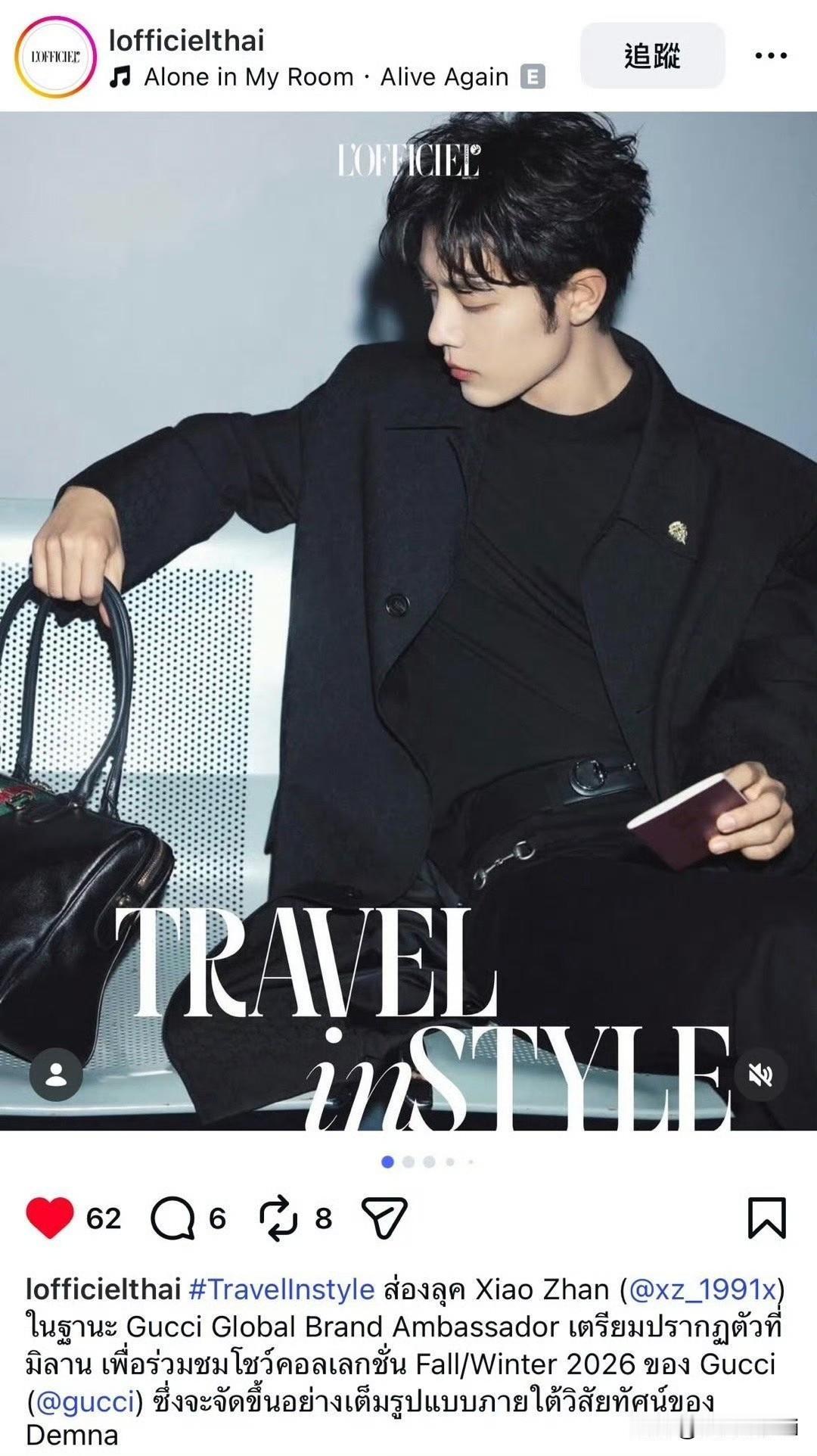 时尚圈只有肖战出现是不会被任何国家的明星压的,肖战在时尚圈的待遇是世界最顶级的,也是内娱历史唯一一个。Gucci大秀已经出发的世界各地的代言人,大使,挚友和明星多的数不清,但Gucci全网只发了肖战一人,而且是置顶宣发,全平台宣发,这就是肖战在世界时尚圈的顶级咖位,和品牌方对肖战的认可和尊重