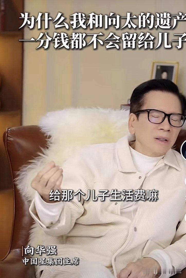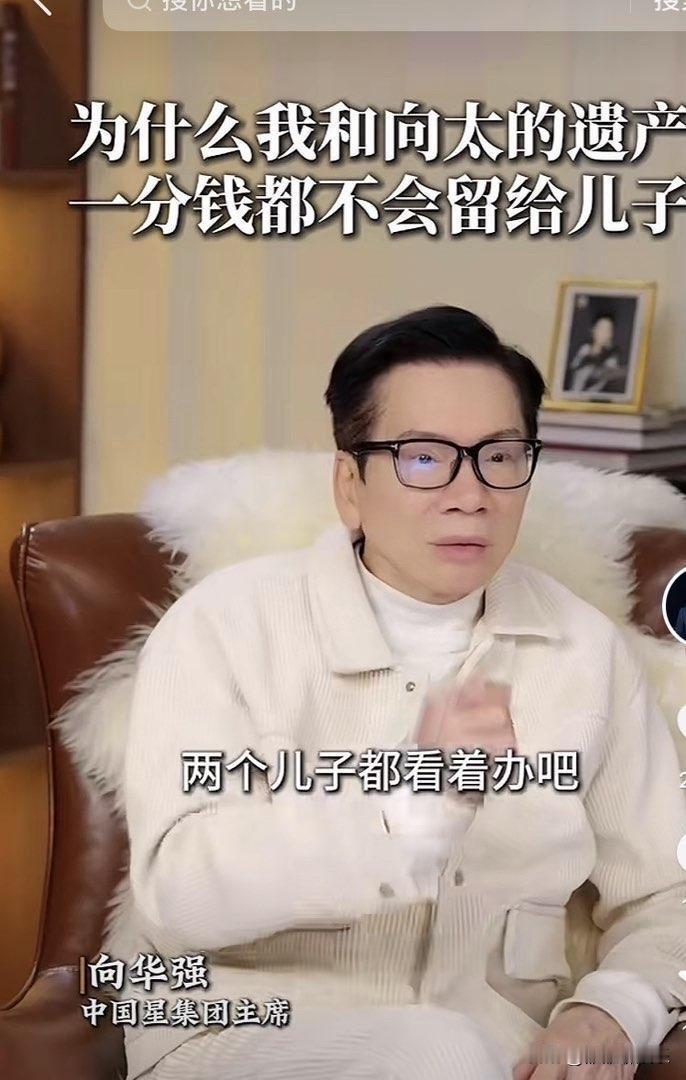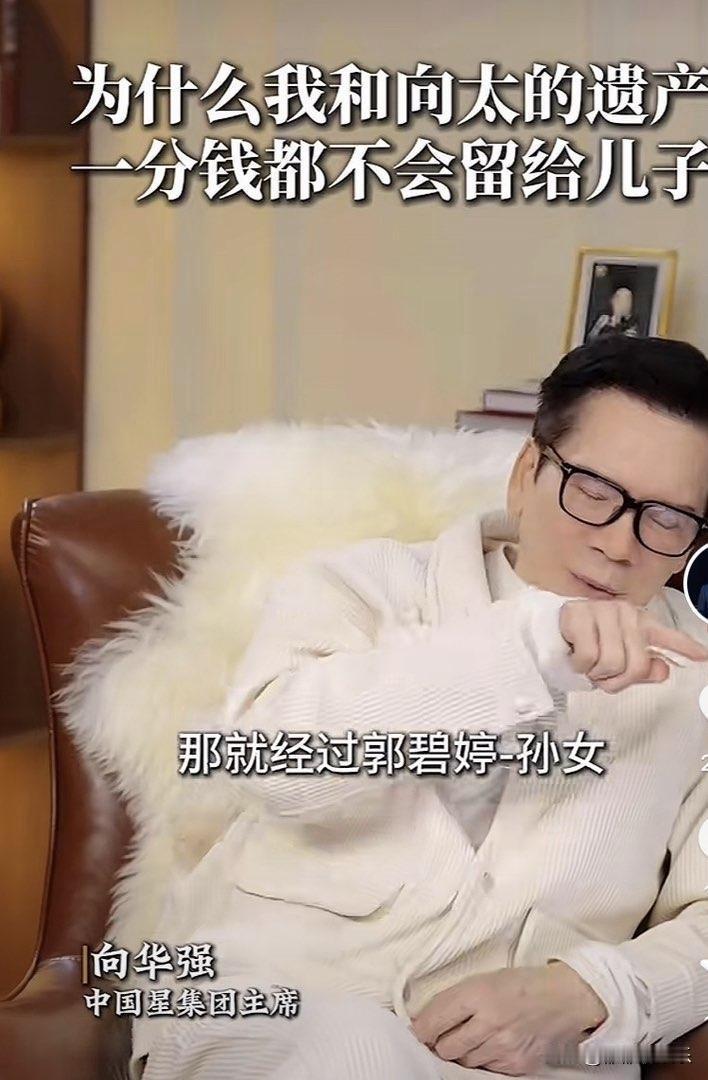 向华强,正式官宣,郭碧婷成最大赢家。 2月25日,向华强在社交平台官宣了一件事,是关于他和向太遗产的分配,他们夫妻决定,一分钱都不留给两个儿子。 向华强说,他和向太已经达成一致,他俩的遗产以后都油郭碧婷管理,两个儿子只领取生活费。 他们的计划是这样的: 一、向太的珠宝。 向太这么多年收藏了很多价值连城的珠宝,估计最起码超过了一个亿,她准备把这些全部都留给郭碧婷,让郭碧婷好好保管,以后再传给自己的孙女,就这样一代代传下去。 二、剩下的所有财产。 他们准备成立家族基金,交给专业人士和郭碧婷一起来打理,两个儿子每个月只领取生活费。他们还列下了很多规矩: 1、向佐和向佑不能躺平,必须要有自己的事业可做,如果他们选择躺平,那么连生活费都不会有。 2、孙子和孙女不能移民美国,也不能去美国读书,一旦去了美国,就取消遗产继承的资格。 3、向佐必须对郭碧婷好,要好好和郭碧婷过日子,如果一旦想娶老三或者老四,那么他也不会得到任何财产,如果他一直对郭碧婷好,那么由郭碧婷做主,可以给他多点的钱。 4、如果我们活的久一点,就看谁的表现好,遗嘱也可以随时变动。 向华强夫妇的这个举动真的很暖心,完全把郭碧婷当成自己的家人,遗产的分配,也都是在全程保护郭碧婷和孙子孙女。 在向华强夫妇眼里,郭碧婷很会教导孩子,也很节省,从不铺张浪费,让郭碧婷管理遗产,他们很放心,比两个儿子放心多了。 向华强夫妇这么精明的两个人,生下的两个儿子,没一个为他们争气,全都容易被骗,所以他们才出此下策,让郭碧婷来管理。 他们的小儿子向佑,更是一个纨绔,这些年他们夫妻给小儿子填补了很多窟窿,但依然于事无补。 向华强说,向太拉黑了向佑,他也没有向佑的联系方式,只能通过秘书来和他联系,向佑想见他,一直喊着不公平,向华强拒绝的很果断,他不想看见这个儿子,因为每次和小儿子不到三句,就惹的他们夫妻生气。 向华强对待儿子和对待孙女完全是不同的,他每天早上都会给孙女打视频,在孙女上学前看一眼孙女,孙女很懂事,总说一些让爷爷开心的话,让向华强感受到了快乐。 在向华强眼里,没有那么多弯弯绕绕,都是自己的家人,为什么小儿子就不能对他们夫妻好一点呢,就不能懂事一点呢?总是在外面给他们惹事,他们夫妻的面子全被小儿子丢尽了。 向华强说了一句很受用的话: “遗嘱可以先立,财产不能先分,分之前儿子是儿子,分之后儿子就可能变成老子了。” 所以向华强夫妻的这波操作,既让郭碧婷安了心,又保证了两个孙子的利益,还警告了两个儿子,简直是人间清醒。 向佐 向华强夫妇