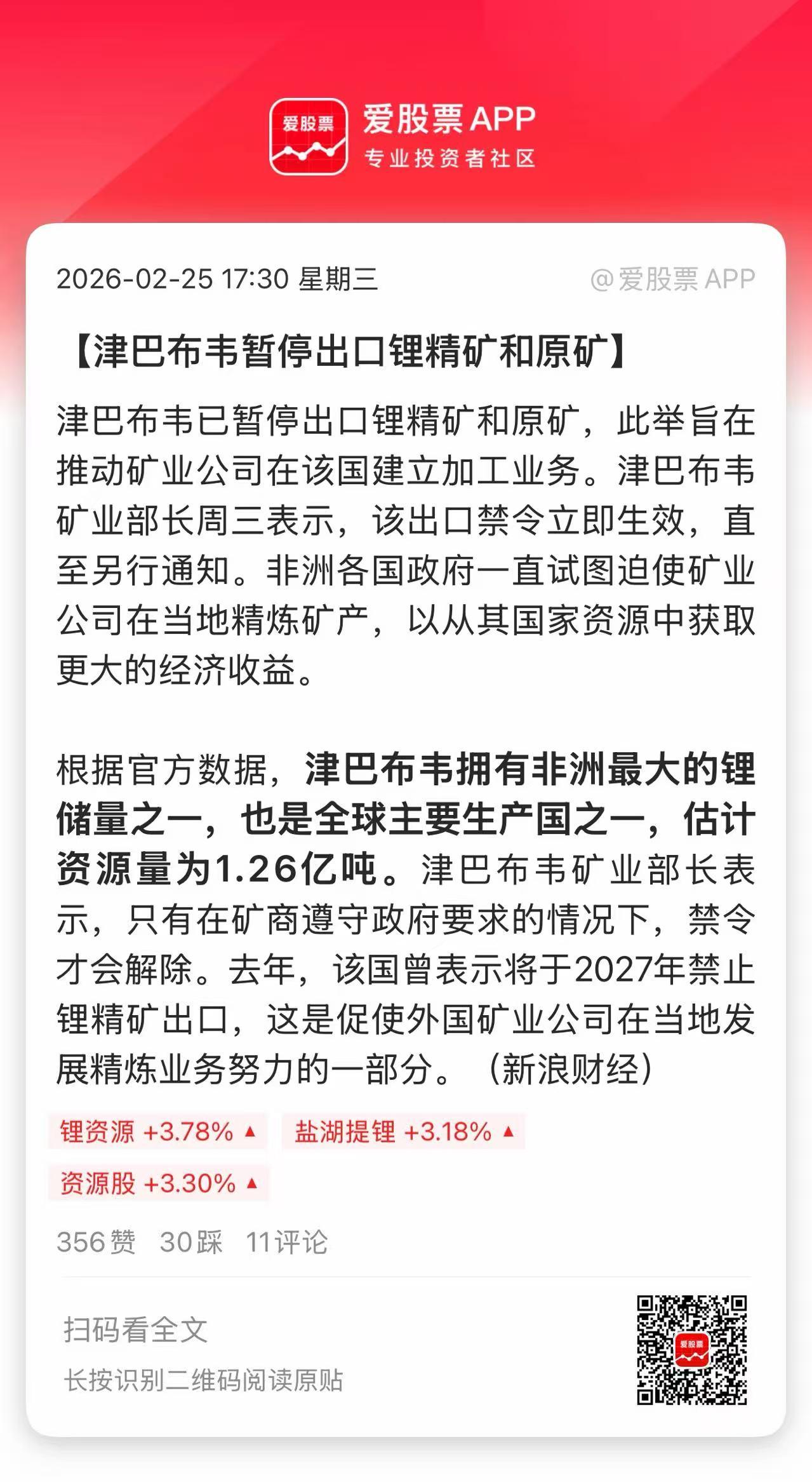 今晚锂矿行业一个利好,津巴布韦宣布立即暂停所有锂矿的出口。该国约占全球锂供给10%,影响还是蛮大的! 爱股君说过,这一轮资源股的狂飙,本质上是各国为“安全焦虑”买单。资源成了战略物质,一些稀缺小金属大家都在抢,这跟过去周期股牛市逻辑是不一样的。 今天资源涨价方向又涨停潮,化工、稀土、钨、锂、电子元件都在走主升浪。机构也在猛吹,说会成为今年市场的主线!核心逻辑是周期品涨价,称之为涨价主线。 总之,周期股肯定没走完,但当大家都讲宏大叙事,我建议大家择机落袋一些!分批止盈后有成本优势,持有心态会更好一些。