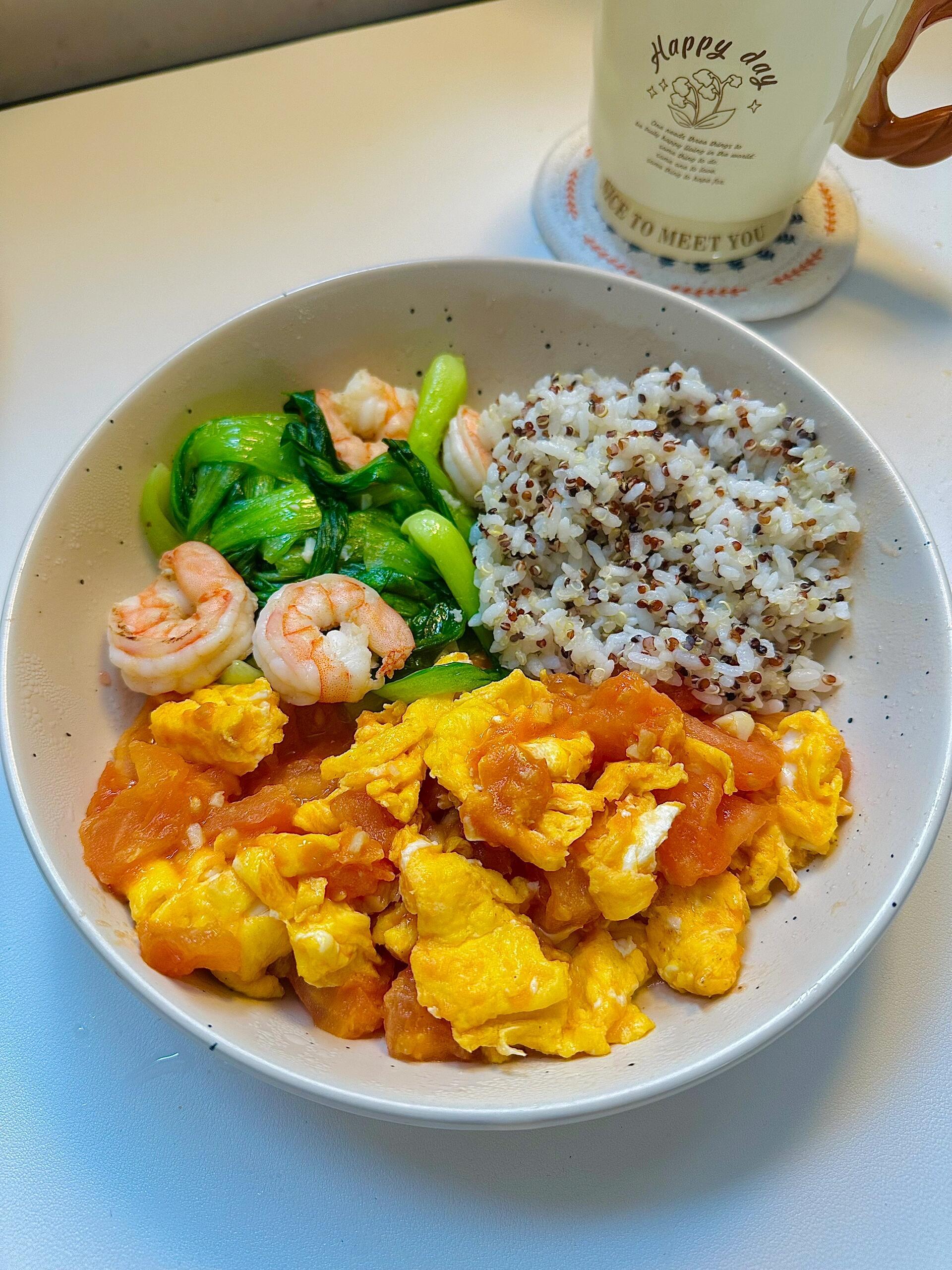 🍃吃会让人幸福的饭年后开启减脂模式啦!🍚藜麦饭|🍅番茄炒蛋|🍤青菜炒虾仁