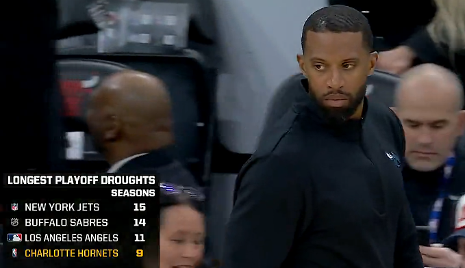 黄蜂已经9个赛季没打进季后赛,是NBA目前最长季后赛荒的球队。