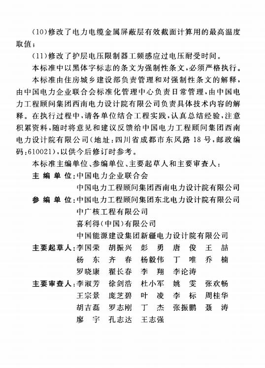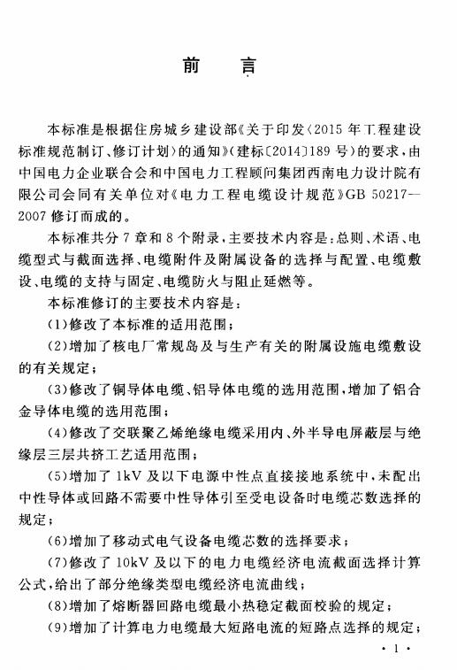 本标准是根据住房城乡建设部《关于印发〈2015年工.程建设标准规范制订、修订计划)的通知》(建标〔2014]189号)的要求,由中国电力企业联合会和中国电力工程顾问集团西南电力设计院有限公司会同有关单位对《电力工程电缆设计规范》GB50217-2007修订而成的。