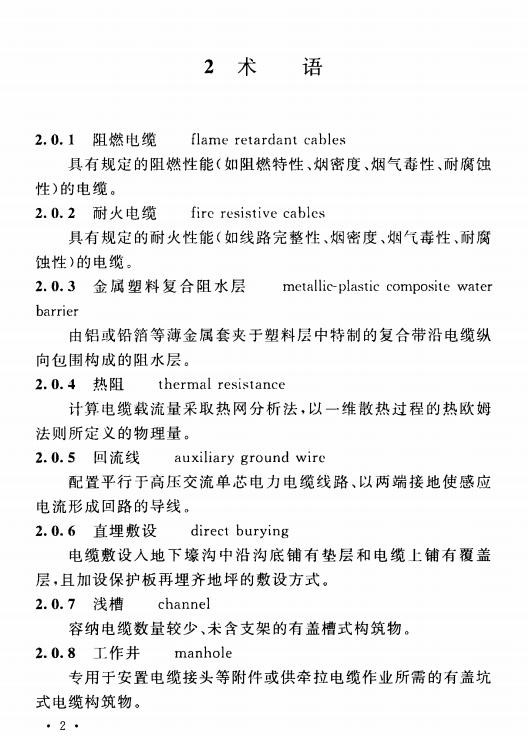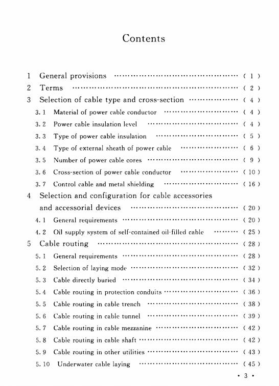 本标准共分7章和8个附录,主要技术内容是:总则、术语、电缆型式与截面选择、电缆附件及附属设备的选择与配置、电缆敷设、电缆的支持与固定、电缆防火与阻止延燃等。