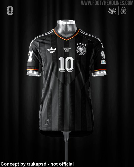 阿迪达斯正在为德国国家队准备一款黑色第三球衣,预计将于2026年世界杯后下半年发布。这或许是阿迪达斯与德国国家队合作的告别之作,之后耐克将成为德国队的官方球衣赞助商。下图为概念图。非官方