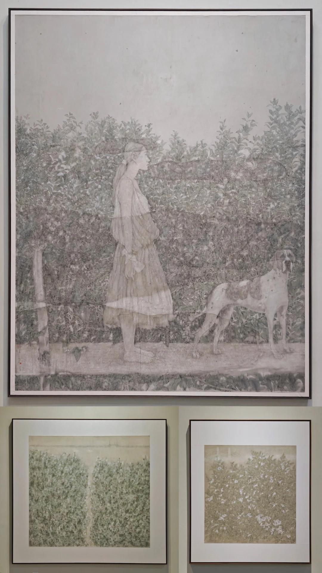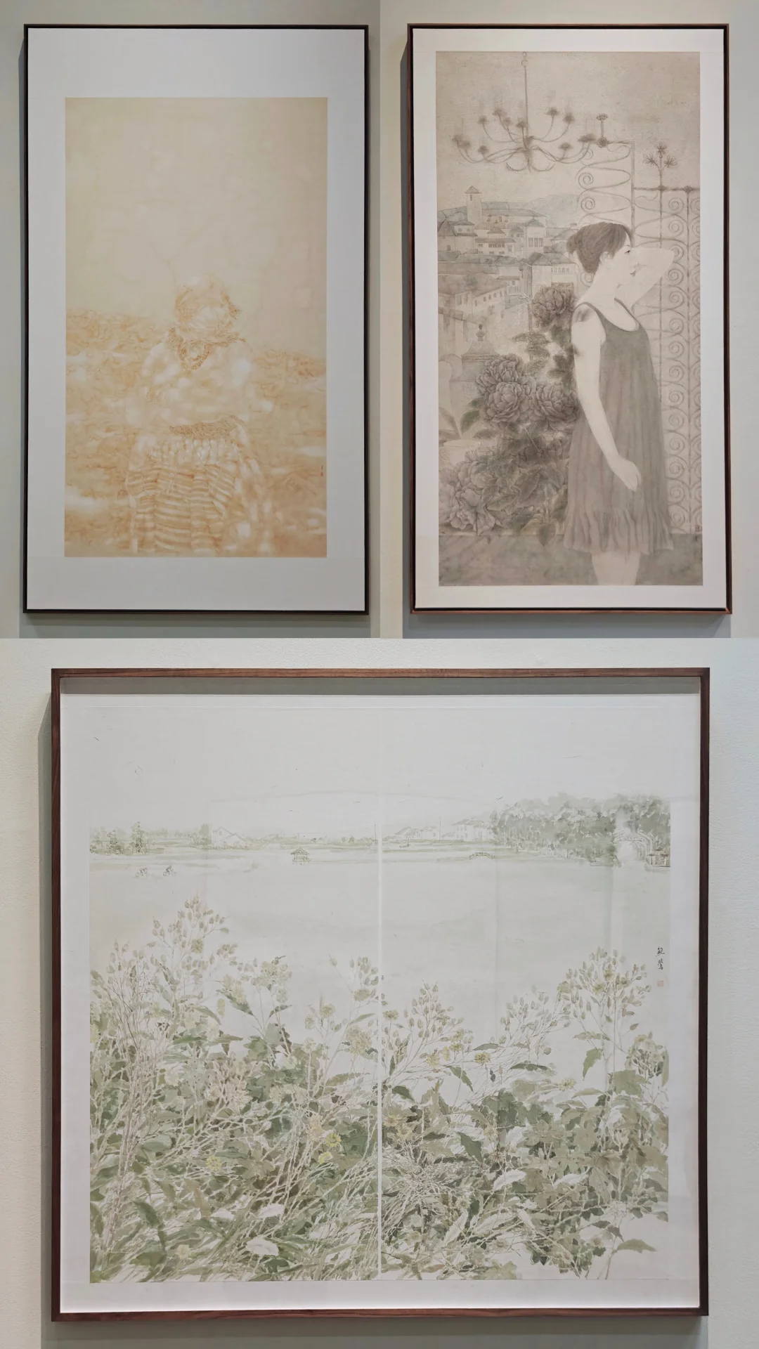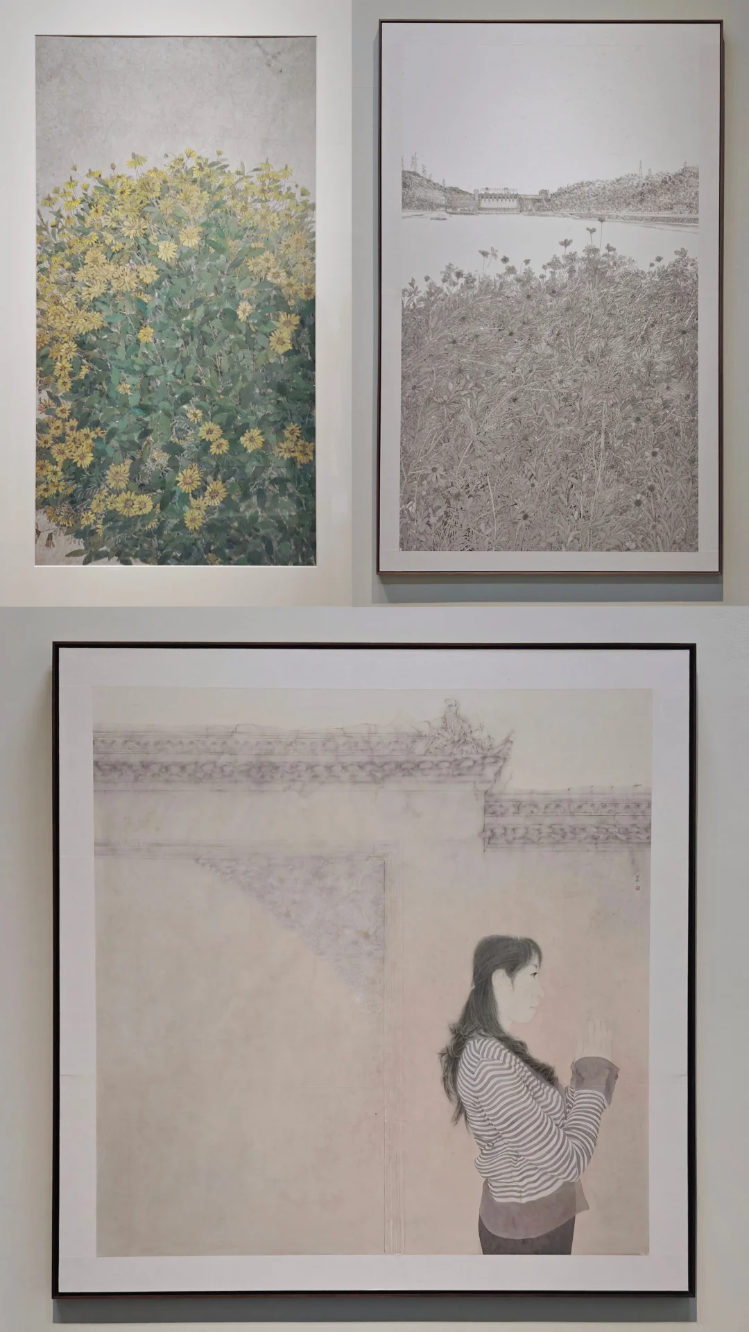▫️《故乡的路》入上海中国画院后首幅大型作品,以工笔勾线结合泼墨积色手法,借都市女子的迷茫境遇隐喻对精神家园的追寻。